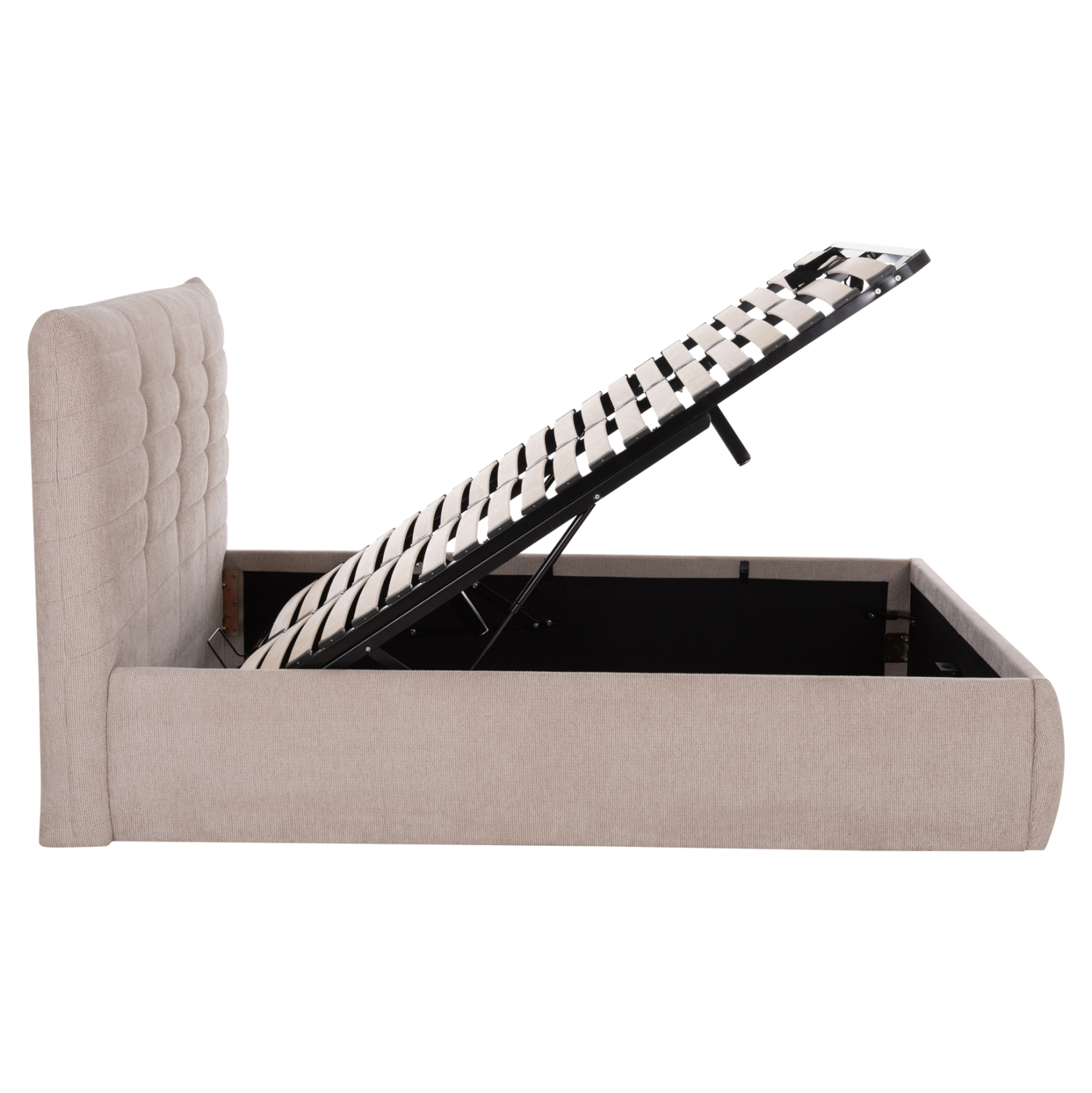 -Ο μηχανισμός του αποθηκευτικού χώρου είναι μεταλλικός και ανασηκώνεται με ανάρτηση (gas-lifts). Πάνω σε αυτό το μεταλλικό πλαίσιο τοποθετούνται και οι τάβλες του στρώματος.