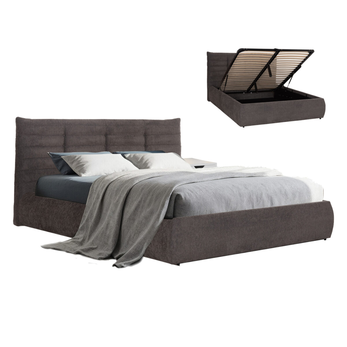 Κρεβάτι Lanse διπλό με αποθηκευτικό χώρο ανθρακί βελούδο 120×200εκ