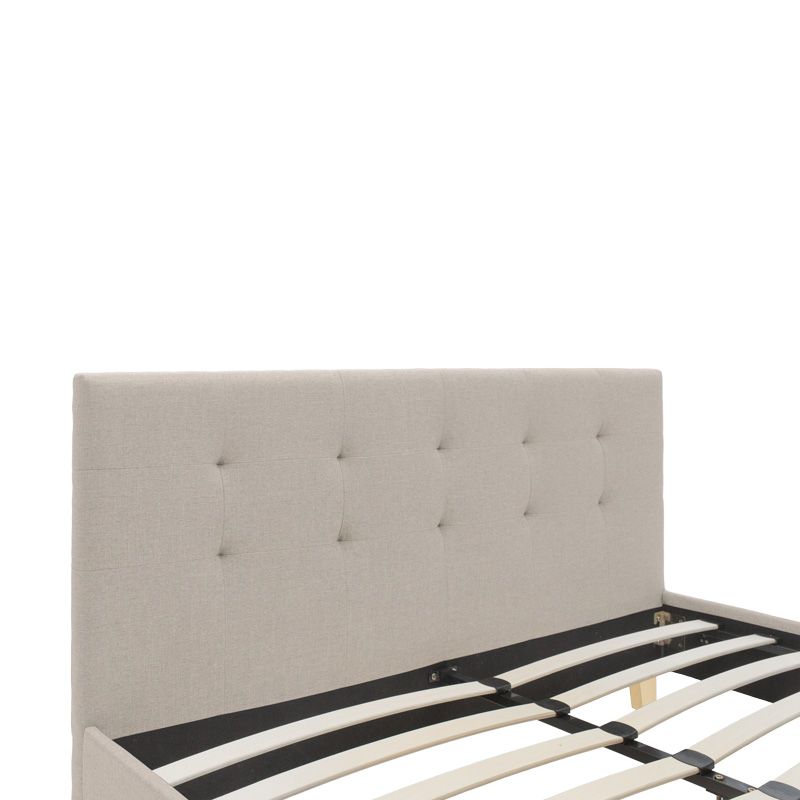 Κρεβάτι Mago ύφασμα σε εκρού απόχρωση με φυσικό ξύλινο πόδι 160×200εκ