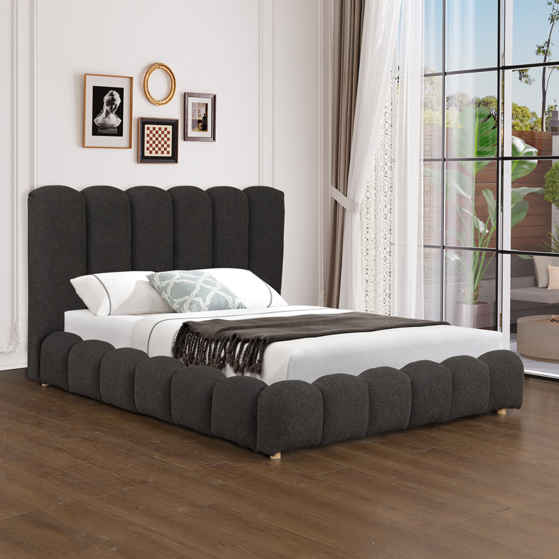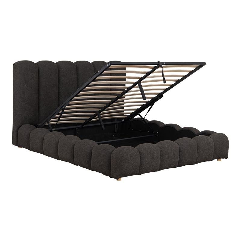 Κρεβάτι Nuvem μπουκλέ υφασμα ανθρακί με αποθηκευτικό χώρο 160×200εκ