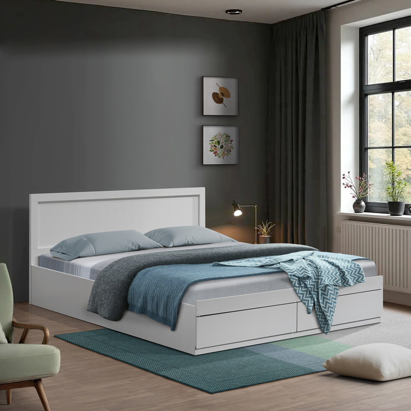 Κρεβάτι Olympus με συρτάρι σε λευκή απόχρωση 150×200εκ