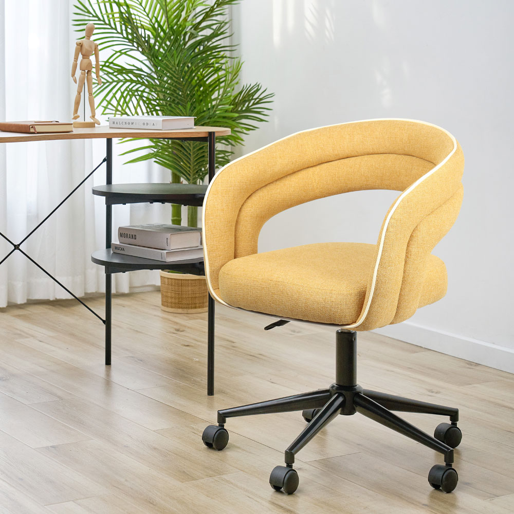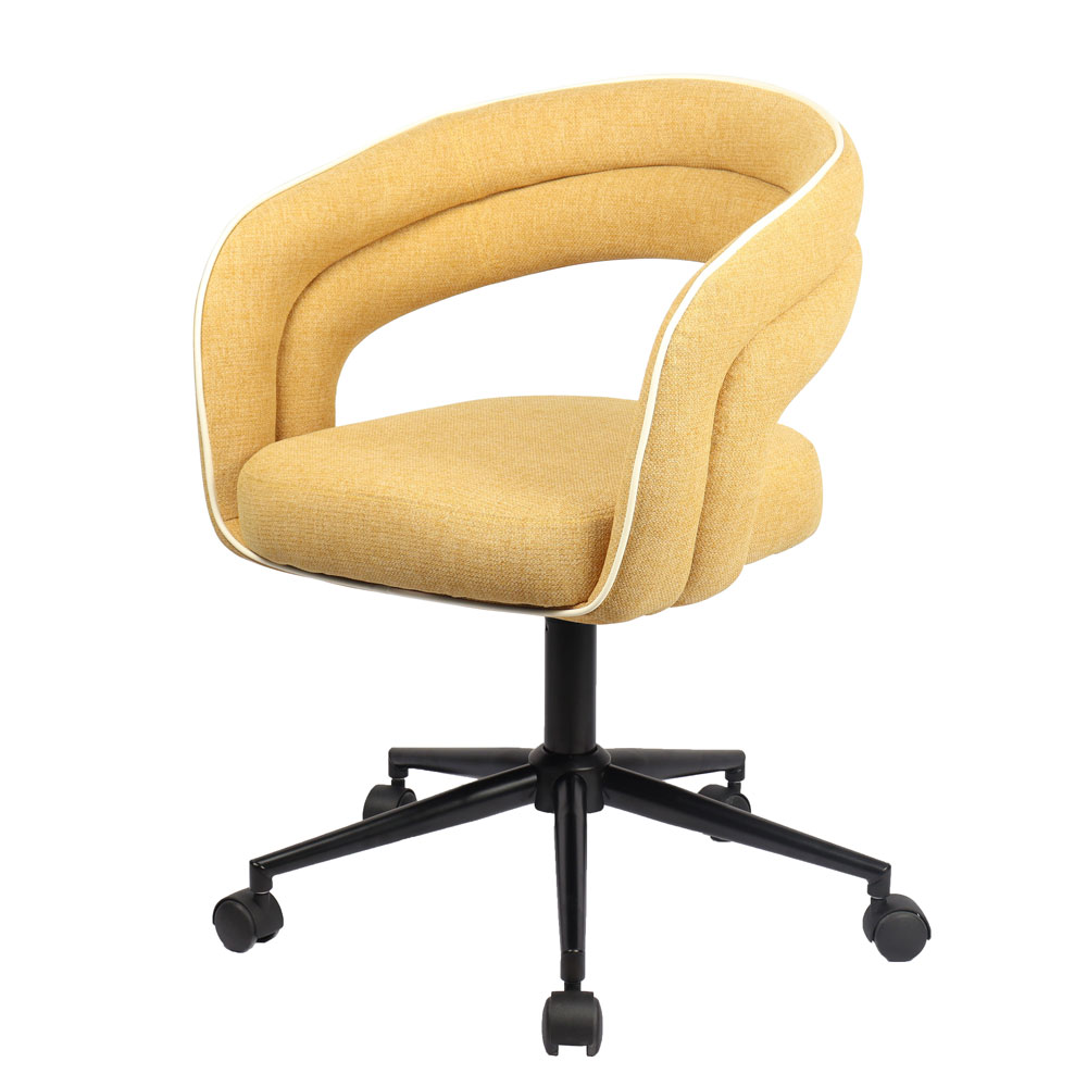 Η καρέκλα γραφείου La Luna ενσωματώνει εκλεπτυσμένη αισθητική και άνεση, καθιστώντας την ιδανική για κάθε χώρο εργασίας. Το κάθισμα και η πλάτη της είναι επενδυμένα με ύφασμα σε μοντέρνα μουσταρδί απόχρωση, ενώ η λευκή λεπτομέρεια στη ραφή προσδίδει μια κομψή και διακριτική πινελιά που αναδεικνύει τον μοναδικό της σχεδιασμό.Η μεταλλική βάση σε μαύρη απόχρωση προσφέρει σταθερότητα και αντοχή, συνδυάζοντας λειτουργικότητα και μοντέρνο στυλ.Η La Luna αποτελεί μια εξαιρετική επιλογή για όσους αναζητούν εργονομία, ποιότητα και διαχρονικό στυλ στο γραφείο τους.