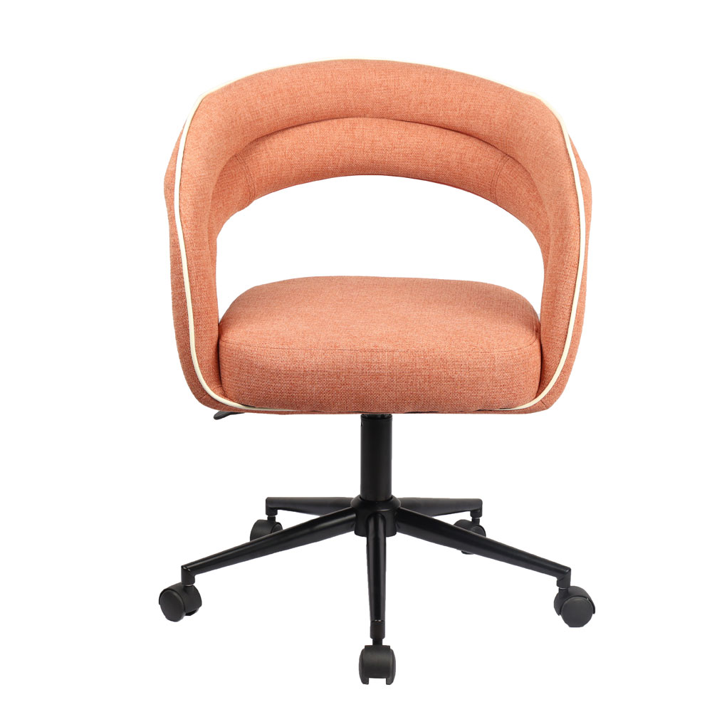 Η καρέκλα γραφείου La Luna ενσωματώνει εκλεπτυσμένη αισθητική και άνεση, καθιστώντας την ιδανική για κάθε χώρο εργασίας. Το κάθισμα και η πλάτη της είναι επενδυμένα με ύφασμα σε ζεστή terracotta απόχρωση, ενώ η λευκή λεπτομέρεια στη ραφή προσδίδει μια κομψή και διακριτική πινελιά που αναδεικνύει τον μοναδικό της σχεδιασμό.Η μεταλλική βάση σε μαύρη απόχρωση προσφέρει σταθερότητα και αντοχή, συνδυάζοντας λειτουργικότητα και μοντέρνο στυλ.Η La Luna αποτελεί μια εξαιρετική επιλογή για όσους αναζητούν εργονομία, ποιότητα και διαχρονικό στυλ στο γραφείο τους.