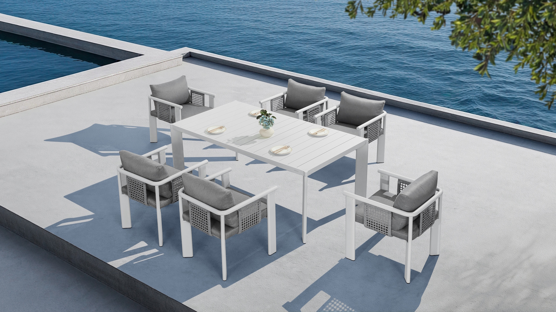 Η Ligo 2.0 είναι μια διακεκριμένη collection για εξωτερικούς χώρους με στρογγυλεμένες άκρες και αρμονικό συνδυασμό αλουμινίου και σχοινιού. Κάθε εξάρτημα παραπέμπει σε σχολαστική κατασκευή, όπου η αλληλεπίδραση φωτός και σκιάς τονίζει την μινιμαλιστική σιλουέτα του.