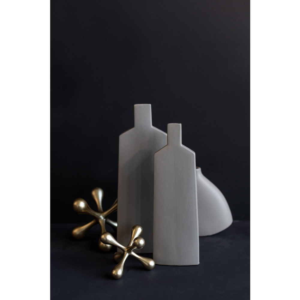 Το κεραμικό βάζο LUI σε διαστάσεις 11x4x33 cm ξεχωρίζει για τη γεωμετρική του φόρμα και τη μοντέρνα αισθητική του. Η ματ γκρί απόχρωση τονίζει τον μινιμαλιστικό σχεδιασμό του, καθιστώντας το ιδανικό για σύγχρονους και industrial χώρους. Μπορεί να τοποθετηθεί μόνο του ή να συνδυαστεί με άλλα διακοσμητικά για μια πιο σύνθετη σύνθεση. Προορίζεται αποκλειστικά για διακοσμητική χρήση – δεν ενδείκνυται για νερό.