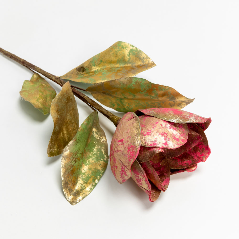 MAGNOLIA ΛΟΥΛΟΥΔΙ ΤΕΧΝΗΤΟ 58cm ΥΦΑΣΜΑ ΜΠΟΡΝΤΩ ΧΡΥΣΟ ΠΡΑΣΙΝΟ PVC