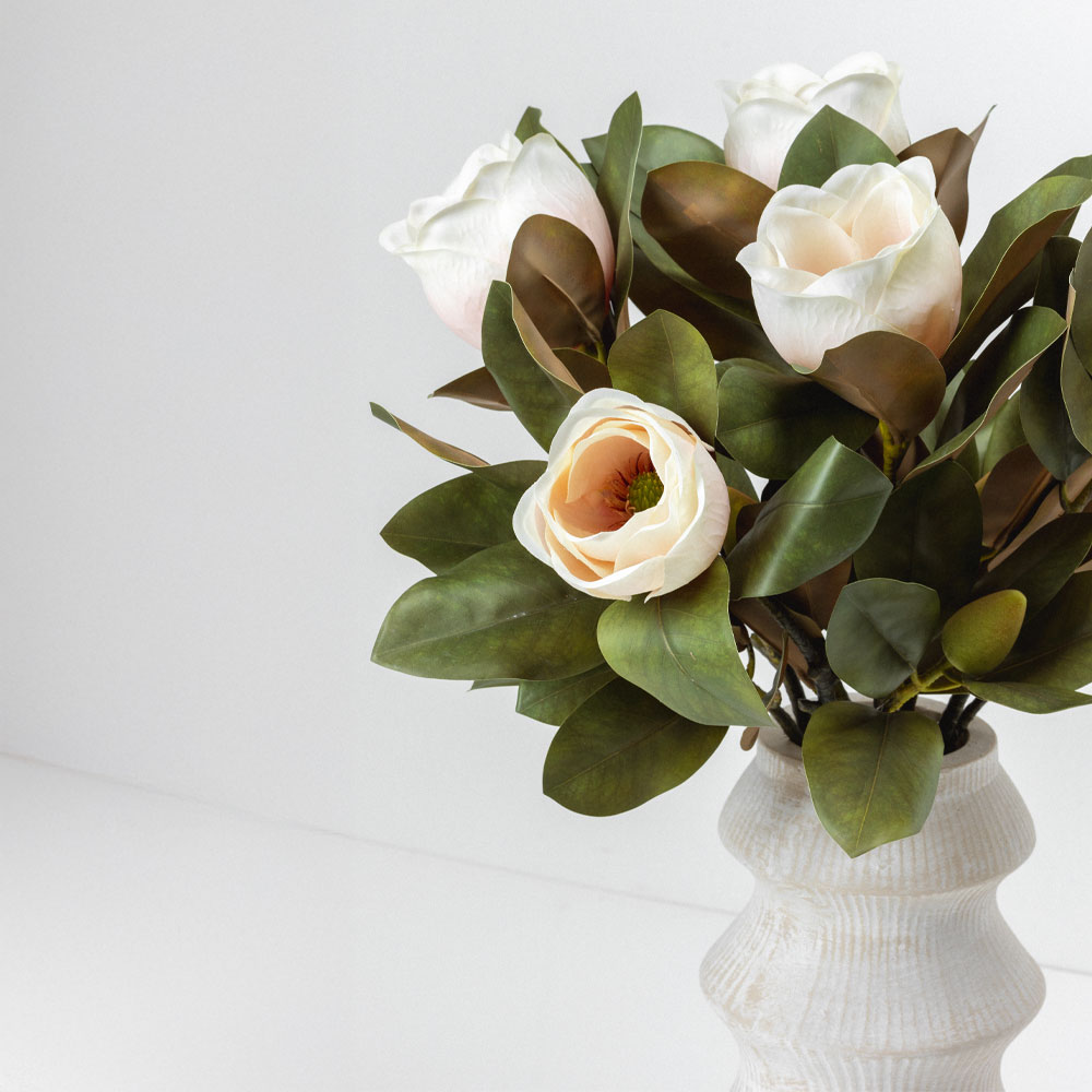 Ρομαντικό και κομψό, το τεχνητό λουλούδι MAGNOLIA 73cm σε απαλή ροζ απόχρωση φέρνει φρεσκάδα και θηλυκή αισθητική σε κάθε εσωτερικό χώρο. Η ρεαλιστική του υφή και το διακριτικό χρώμα του το καθιστούν ιδανικό για ρομαντικές ή shabby chic διακοσμήσεις. Από μόνο του ή σε ανθοσυνθέσεις, χαρίζει μια ανάλαφρη και γλυκιά πινελιά, ιδανική για υπνοδωμάτια, καθιστικά ή επαγγελματικούς χώρους με απαλή διακόσμηση.