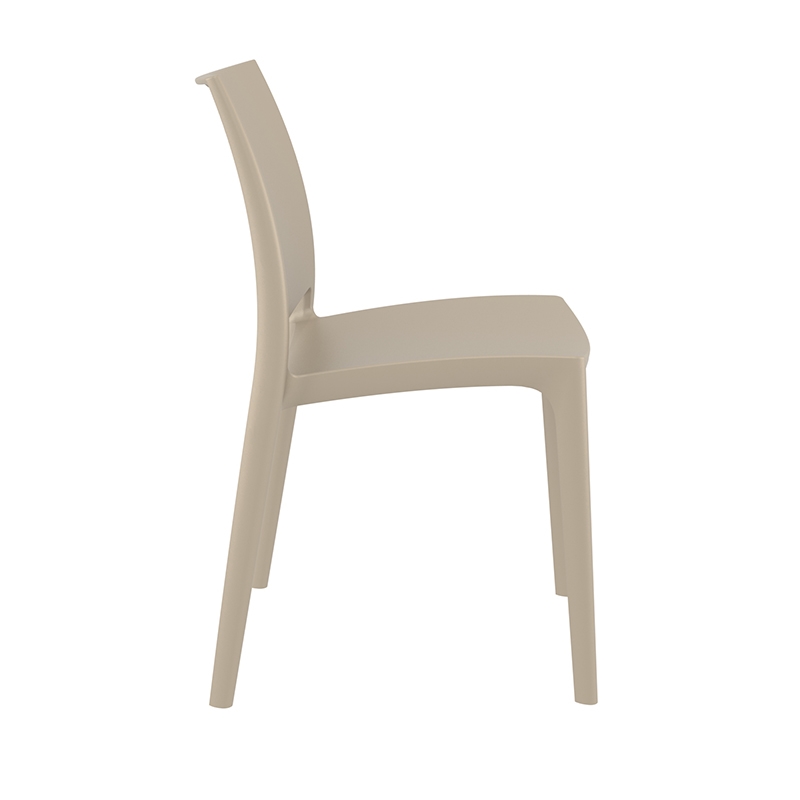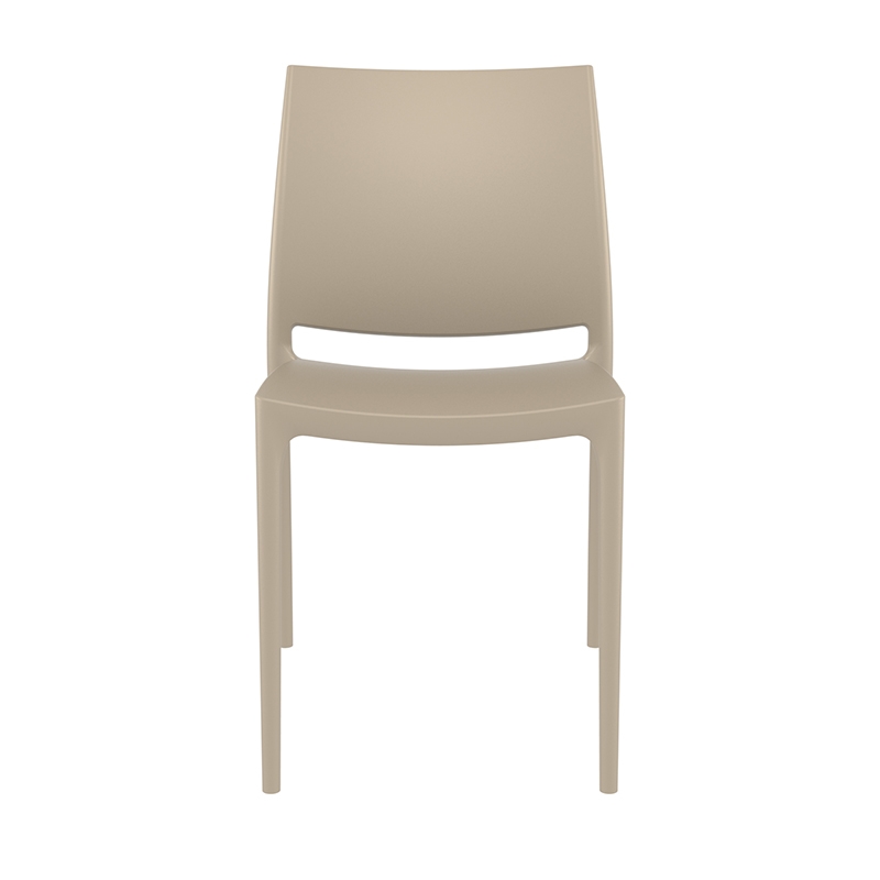Maya καρέκλα του οίκου Siesta σε χρώμα taupe με μοντέρνο σχεδιασμό και άνετο κάθισμα. Κατασκευασμένη από πολυπροπυλένιο με 20% fiber glass για απόλυτη αντοχή στο χρόνο. Κατάλληλη για εσωτερική και εξωτερική χρήση, είναι στοιβαζόμενη για εύκολη αποθήκευση.Ιδανική επιλογή για επαγγελματικούς χώρους. Πιστοποιημένο προϊόν από τον Ιταλικό οίκο CATAS.