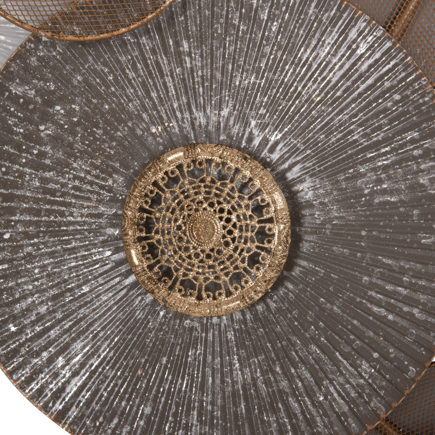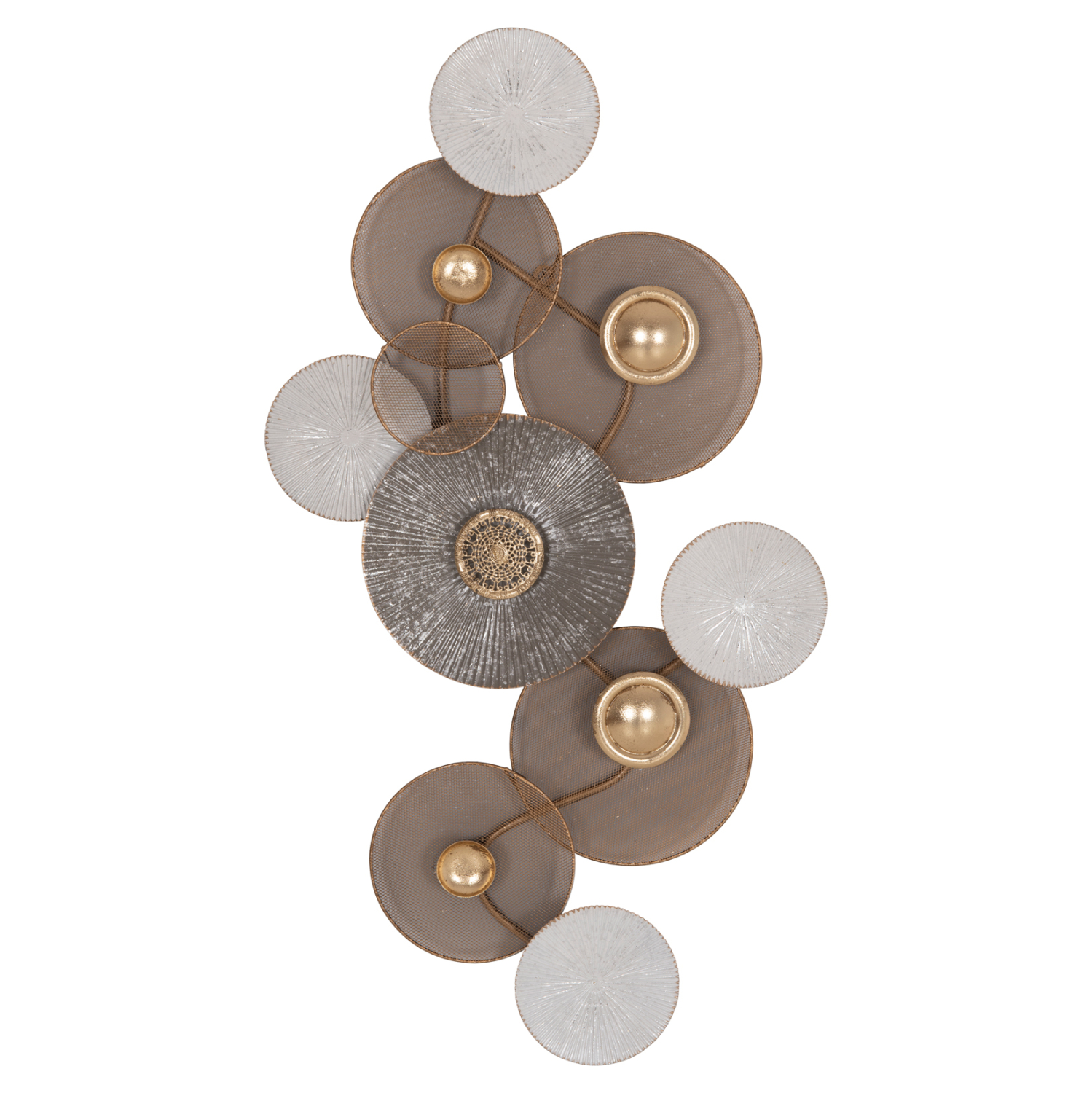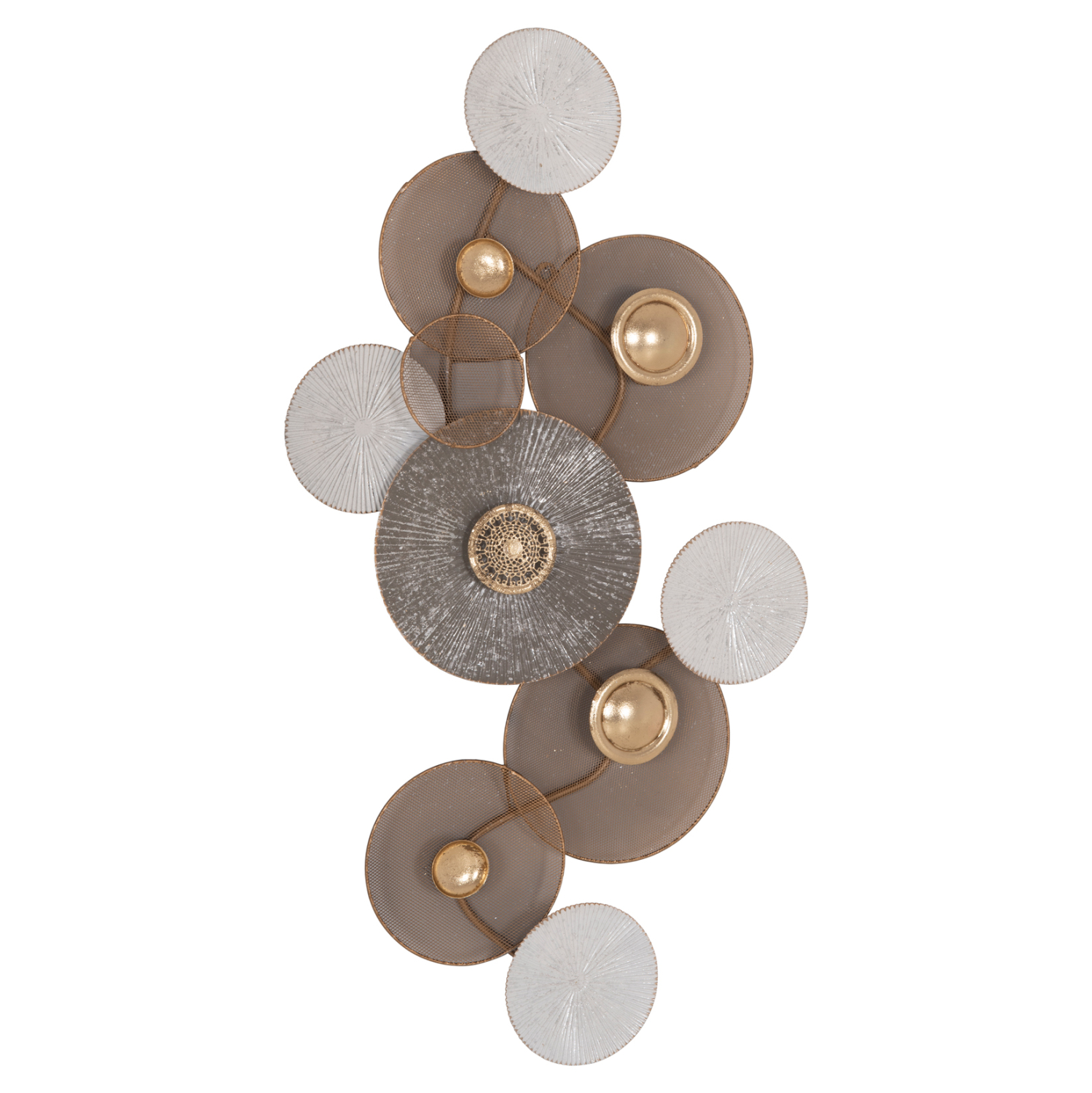Μεταλλικό διακοσμητικό τοίχου σε χρυσή και λευκή απόχρωση με ανθρακί λεπτομέρεια.