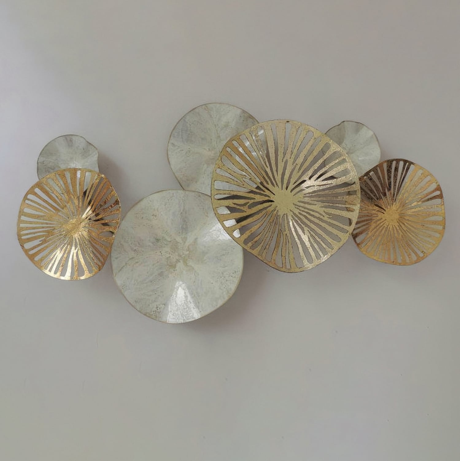 Μεταλλικό διακοσμητικό τοίχου σε λευκή απόχρωση με χρυσές λεπτομέρειες.
