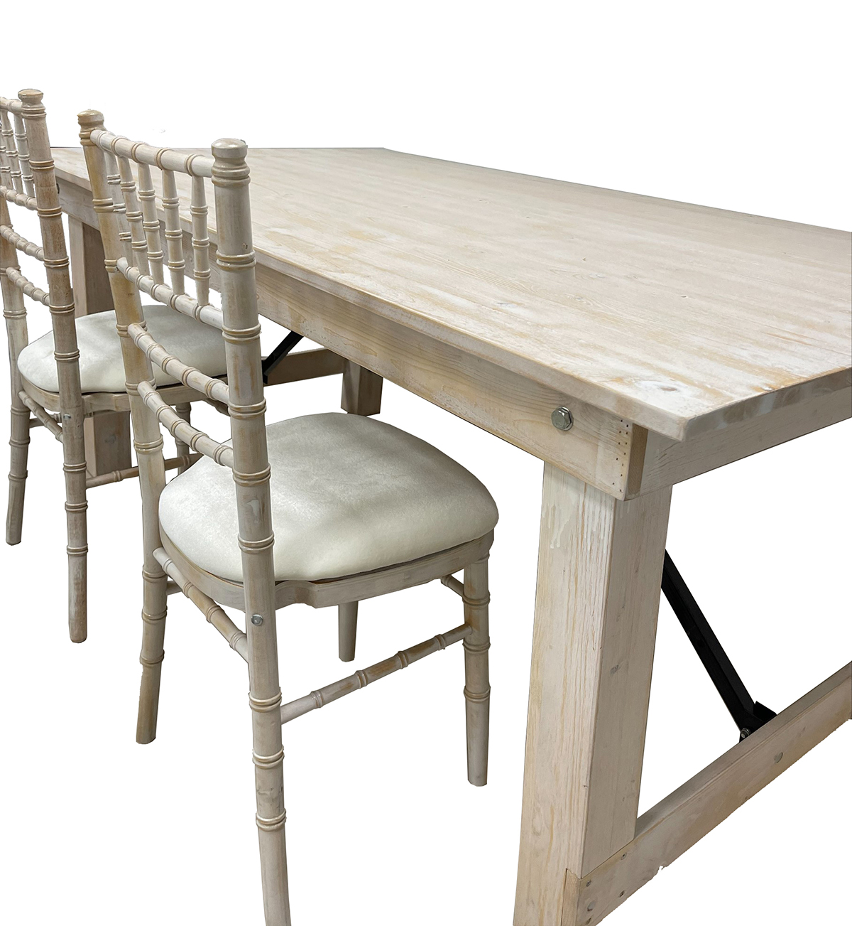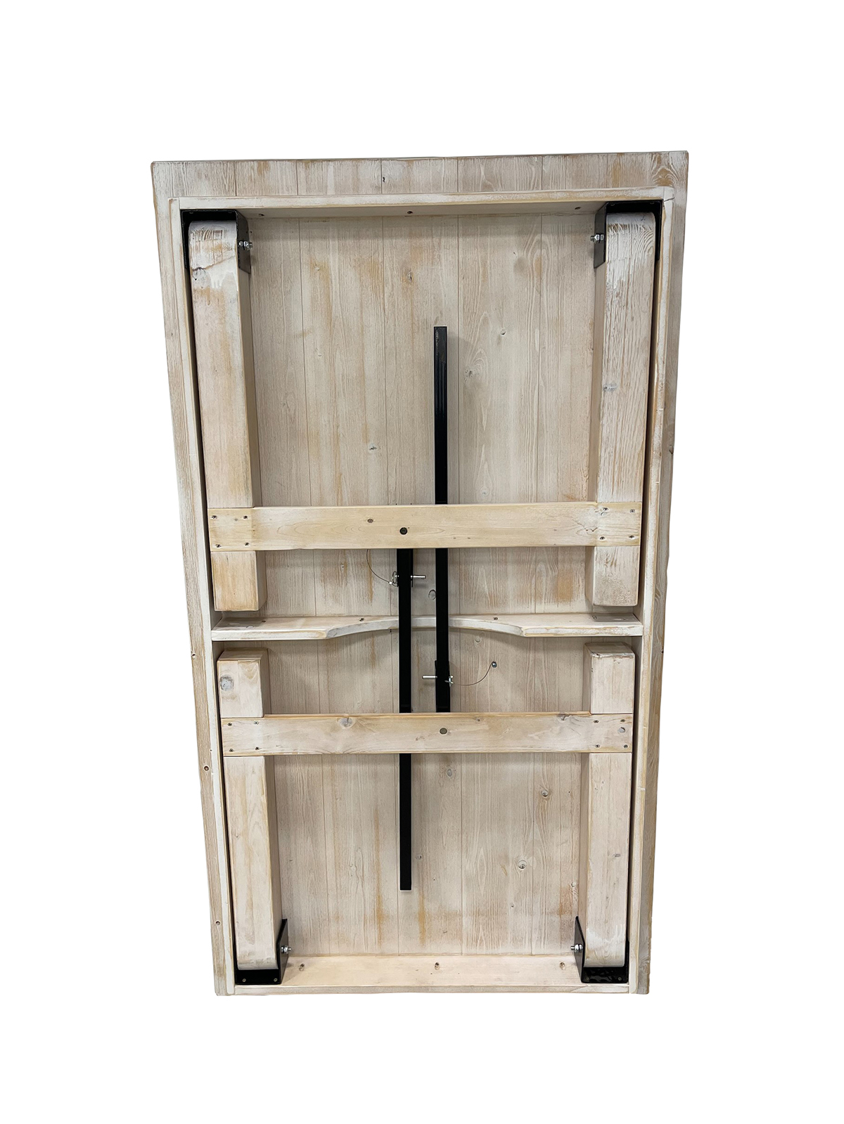 Η επιφάνειά του είναι από μασίφ ξύλο πεύκου, προσδίδοντας φυσική αισθητική και αντοχή στη χρήση, ενώ η αναδιπλούμενη μεταλλική βάση επιτρέπει την εύκολη αποθήκευση και μεταφορά, καθιστώντας το ιδανικό για χώρους που αλλάζουν συχνά διαρρύθμιση.