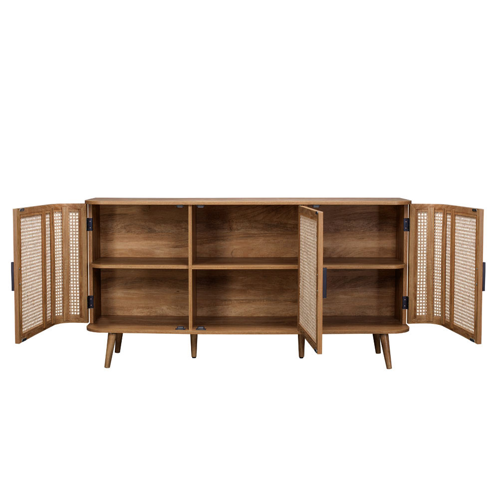 Ο μπουφές Monmarte αποπνέει μια αίσθηση διαχρονικής κομψότητας και φυσικής γοητείας, ιδανικός για όσους αναζητούν έναν μοναδικό συνδυασμό στυλ και λειτουργικότητας. Με επένδυση από paper wood σε φυσική απόχρωση, προσφέρει ζεστασιά και αυθεντικότητα στον χώρο, ενώ οι όψεις των ντουλαπιών από rattan προσθέτουν μια χειροποίητη αίσθηση και εξωτική φινέτσα. Οι καμπύλες λεπτομέρειες στον σχεδιασμό του ενισχύουν την εκλεπτυσμένη αισθητική του. Ο μπουφές Monmarte είναι η τέλεια επιλογή για να αναδείξετε τη διακόσμηση του σαλονιού ή της τραπεζαρίας σας, παρέχοντας παράλληλα άνετο αποθηκευτικό χώρο.