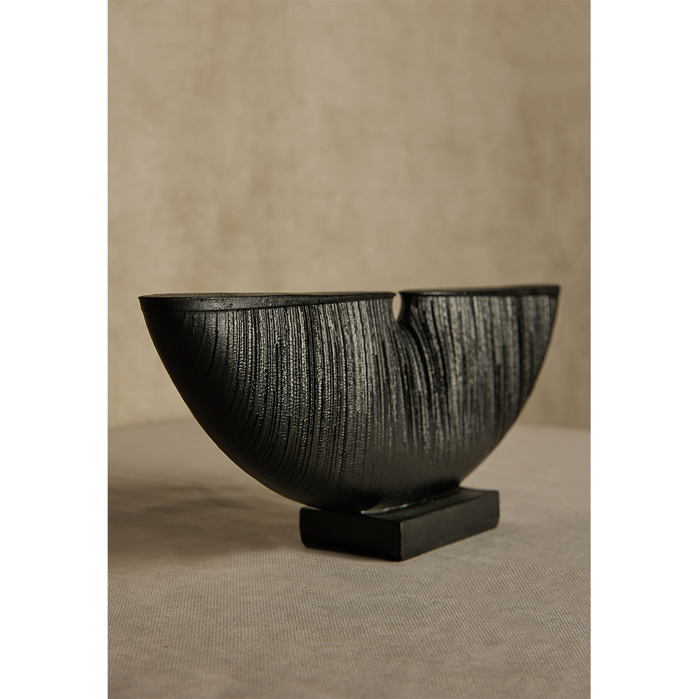 Το διακοσμητικό MORIRI Totem ξεχωρίζει για τη λιτή του γεωμετρία και την έντονη μαύρη απόχρωση. Η συμμετρική του μορφή θυμίζει μισοφέγγαρο και προσδίδει μια σύγχρονη μινιμαλιστική αισθητική. Ιδανικό για να διακοσμήσει κονσόλες, ράφια ή τραπέζια με χαρακτήρα και διακριτική κομψότητα.