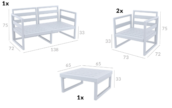 Mykonos set του οίκου Siesta σε χρώμα taupe.Το set περιλαμβάνει 1 2θέσιο καναπέ,2 πολυθρόνες,τραπέζι και μαξιλάρια σε χρώμα beige.Από υψηλής ποιότητας πολυπροπυλένιο με ενίσχυση από υαλώδεις ίνες (fiber glass) για απόλυτη αντοχή.Χωρίς μεταλλικό σκελετό για μεγαλύτερη αξιοπιστία στον χρόνο.Διαθέτει UV protection για μέγιστη προστασία από τον ήλιο ώστε να μην αλλοιωθούν τα χρώματα.Κατάλληλο για εσωτερική και εξωτερική χρήση.Πιστοποιημένο προϊόν από τον Ιταλικό οίκο CATAS.