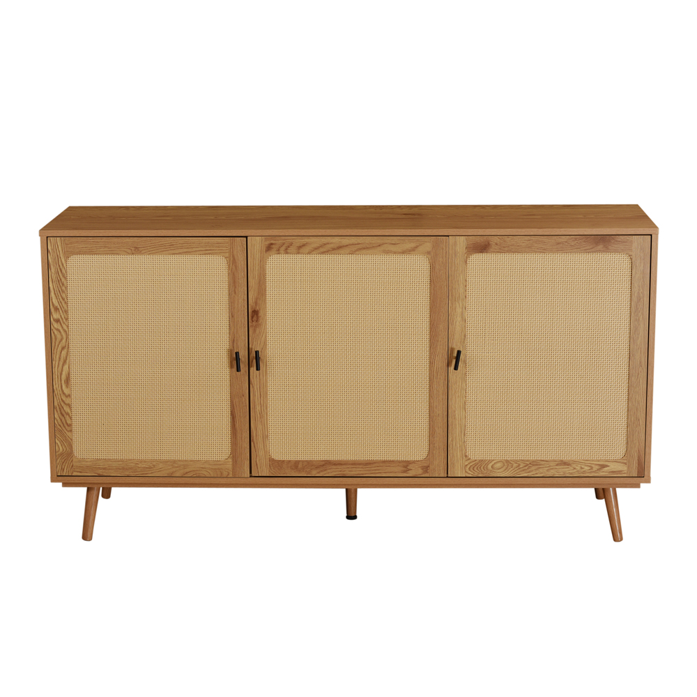 Ο μπουφές NATURA κατασκευασμένος από μοριοσανίδα με επένδυση μελαμίνης και ξύλινα πόδια από rubberwood, προσφέρει μια ανάλαφρη, σκανδιναβικής έμπνευσης αισθητική. Με άνετη επιφάνεια και τρία ντουλάπια, αποτελεί λειτουργική λύση για την οργάνωση του σαλονιού ή της τραπεζαρίας. Η φυσική απόχρωση του ξύλου προσθέτει γήινη αίσθηση, ενώ η απλότητά του το καθιστά εύκολο να συνδυαστεί με κάθε στυλ διακόσμησης – από minimal έως rustic chic.