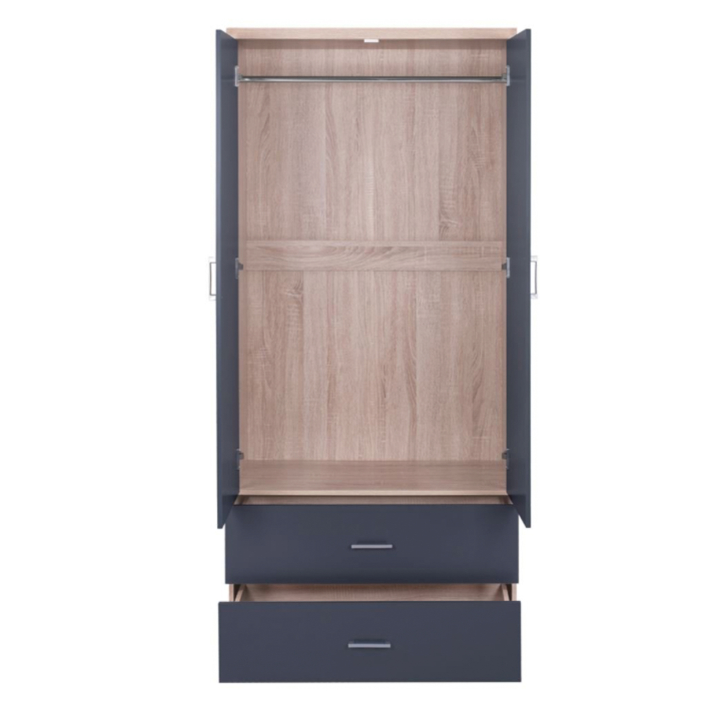 Η ντουλάπα είναι κατασκευασμένη από εξαιρετικής ποιότητας μελαμίνη. Η μελαμίνη είναι είδος ξύλου σε μορφή μοριοσανίδας, πολύ ανθεκτικό και με μεγάλη σκληρότητα, με αποτέλεσμα να είναι πολύ ανθεκτική στις γρατζουνιές, στην τριβή και τους λεκέδες.