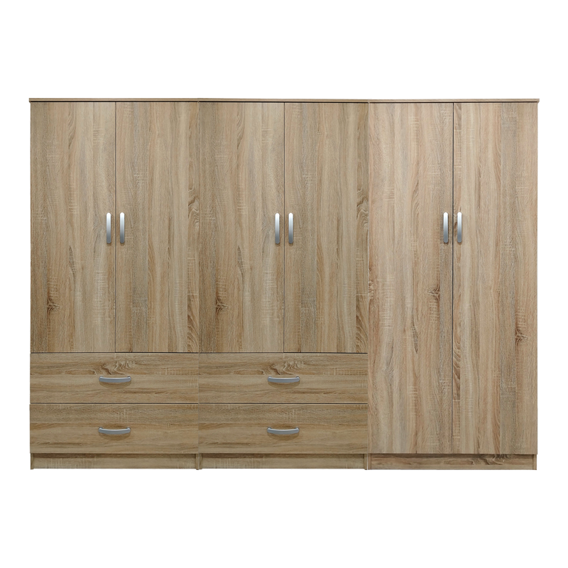 Ντουλάπα τετράφυλλη Royal με συρτάρια και πατάρι sonoma 200x58x230εκ
