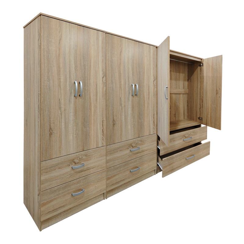 - Περιλαμβάνει εξι πόρτες, εσωτερικά φέρει ράγα για κρεμάστρες ενώ κάτω φέρει εξι μεγάλα συρτάρια για την αποθήκευση ρούχων και αξεσουάρ.