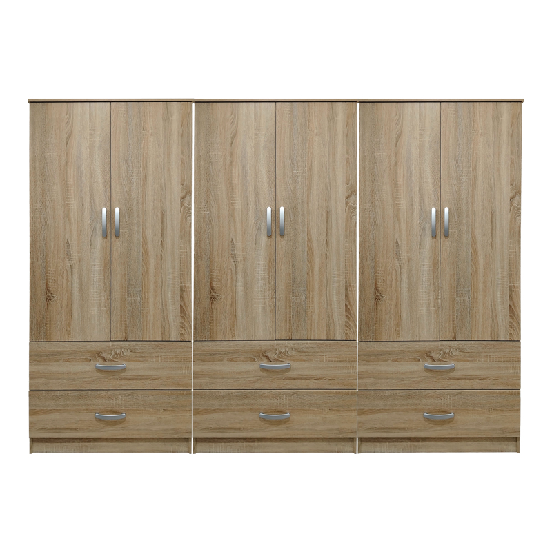 Ντουλάπα τετράφυλλη με συρτάρια Royal καρυδι-oak 200x58x230εκ