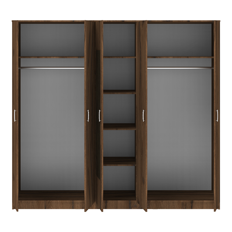 Ντουλάπα πεντάφυλλη με καθρέφτη Luna καρυδί-oak 220x52x200εκ