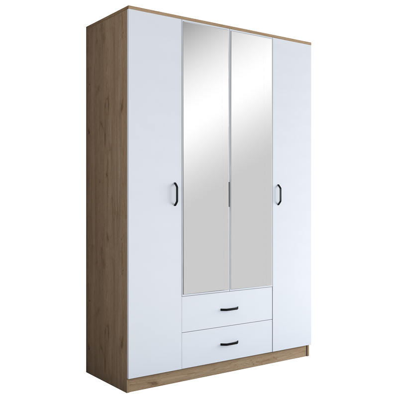 Ντουλάπα τετράφυλλη με καθρέπτη Rersin λευκό καρυδί μελαμίνη 140×51.5×210εκ