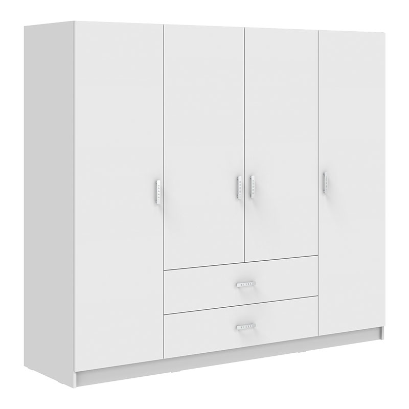 Ντουλάπα τετράφυλλη Royal με συρτάρια και πατάρι λευκό 200x58x230εκ