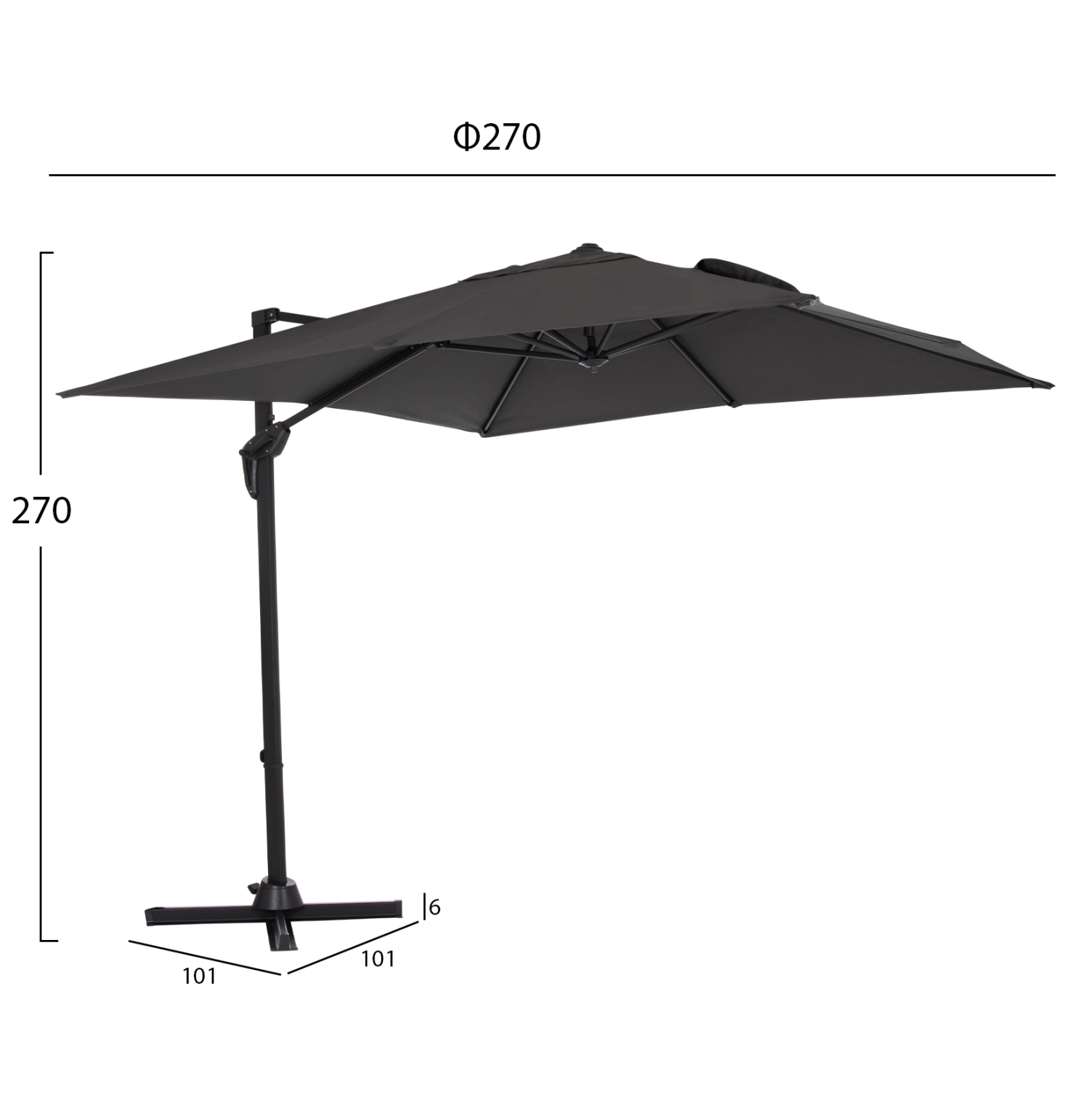 Ομπρέλα Κήπου/Πισίνας JAVANTE 2.7×2.7m με Πλευρικό Ιστό (κρεμαστή) & Περιστροφή 360° – Γκρι