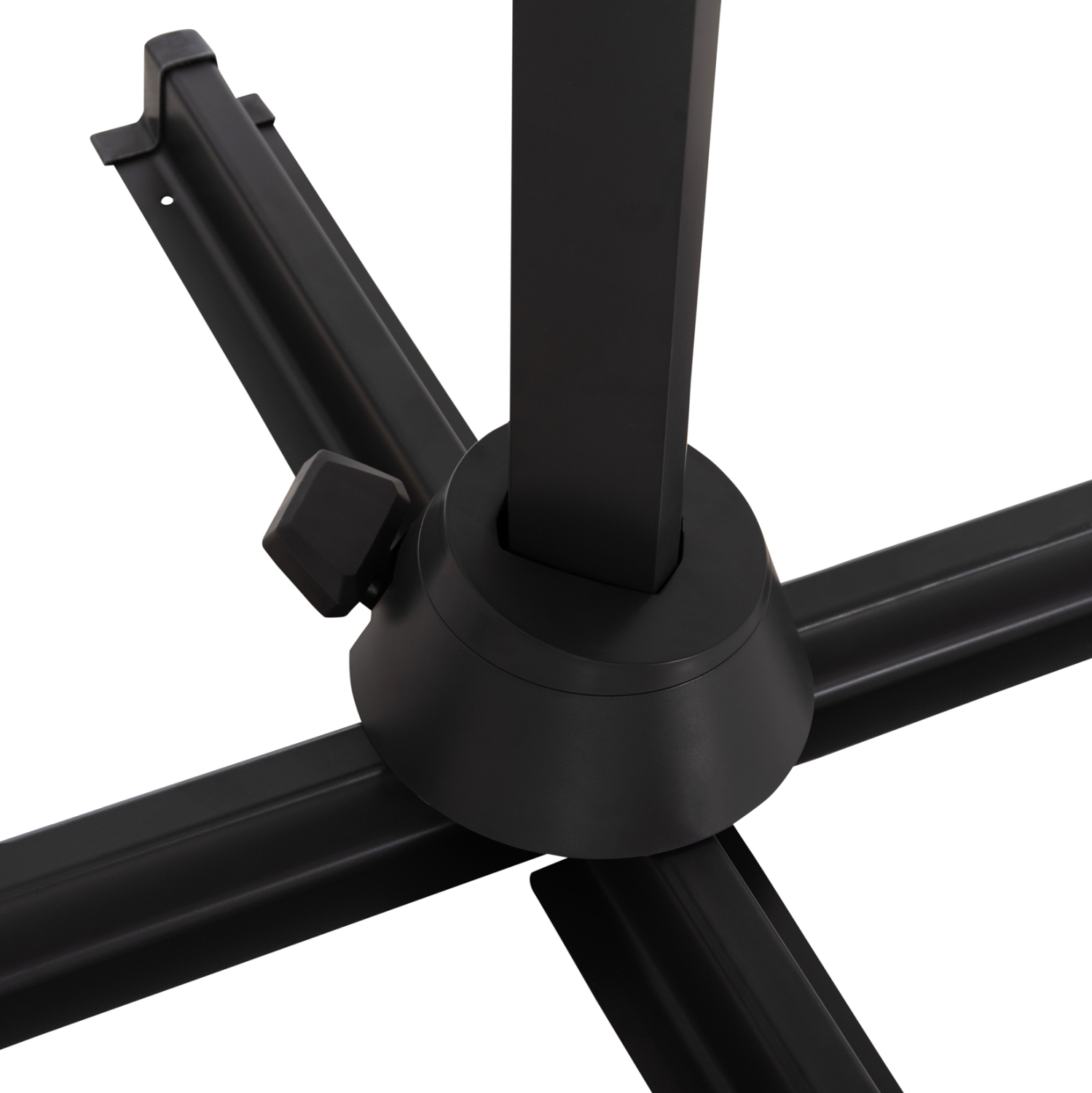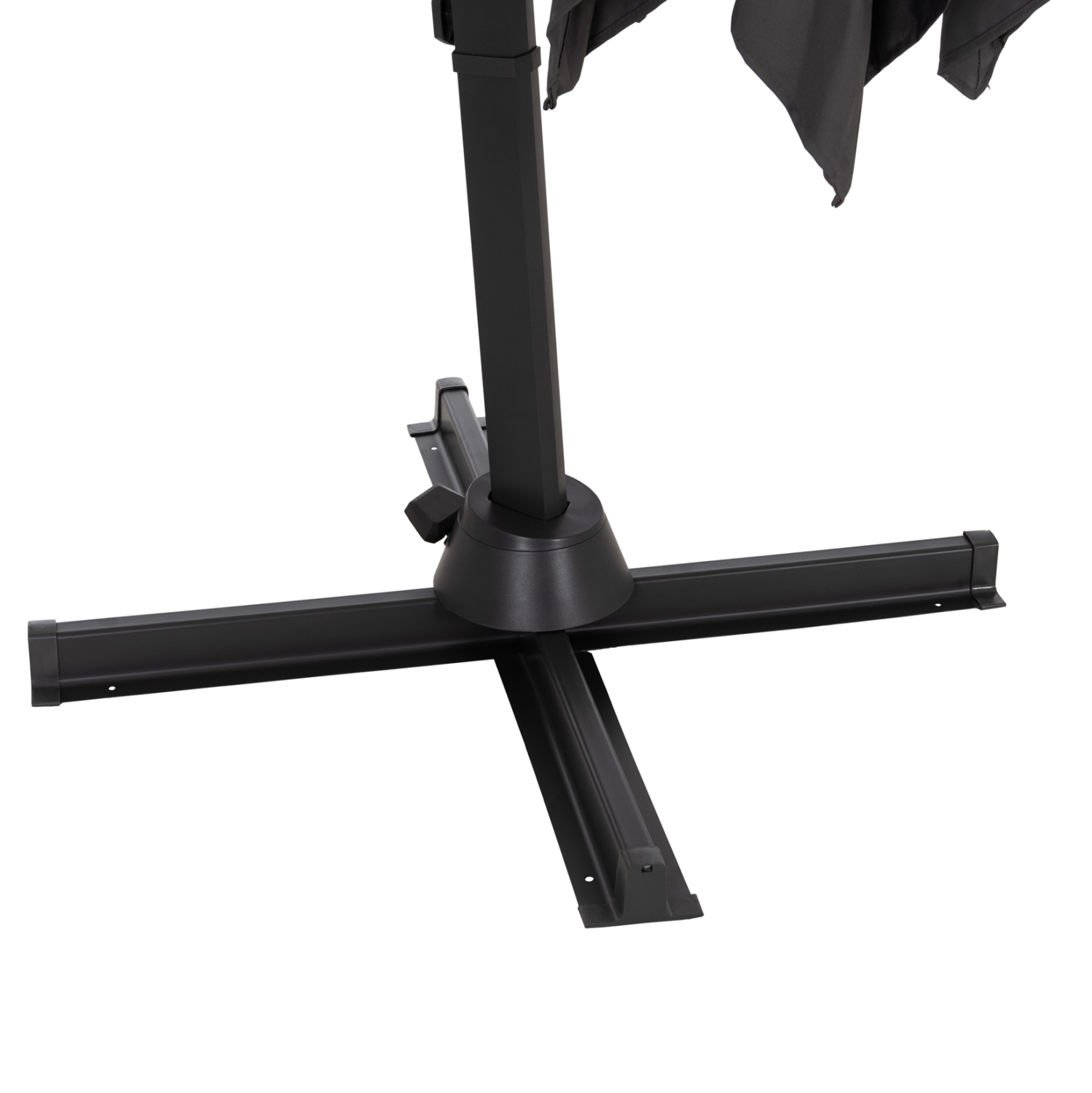 Η ανθεκτική κατασκευή από αλουμίνιο και ενισχυμένα μεταλλικά στοιχεία εξασφαλίζει σταθερότητα και μεγάλη διάρκεια ζωής, ενώ η ηλεκτροστατική βαφή προστατεύει από εξωτερικές συνθήκες. Ο μηχανισμός με χειρολαβή και foot pedal επιτρέπει εύκολη χρήση και περιστροφή 360°, προσφέροντας ευελιξία στη σκίαση καθ’ όλη τη διάρκεια της ημέρας.