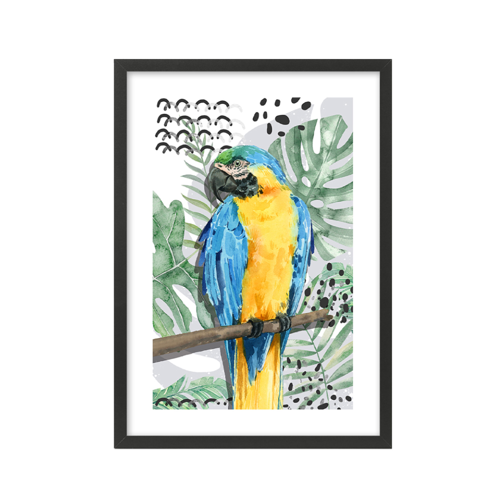 Το σετ πινάκων OMU παρουσιάζει δύο εντυπωσιακά πουλιά σε ζωηρούς τόνους τιρκουάζ, κίτρινου και πράσινου, δημιουργώντας μια χαρούμενη και εξωτική αισθητική. Οι λεπτομερείς εικονογραφήσεις θυμίζουν vintage naturalist art, ενώ η μαύρη κορνίζα δίνει μοντέρνο, καθαρό τελείωμα. Το MDF και η εκτύπωση υψηλής ποιότητας εξασφαλίζουν ανθεκτικότητα. Ιδανικό για σαλόνια, γραφεία και boho–exotic διακοσμήσεις.