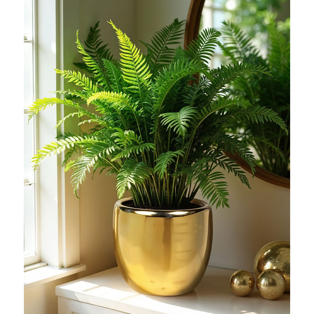 Το ORO είναι ένα εντυπωσιακό κεραμικό βάζο σε μοντέρνο χρυσό φινίρισμα που προσδίδει λάμψη και πολυτέλεια στον χώρο. Η καμπύλη γεωμετρία του αναδεικνύει τόσο αποξηραμένα φυτά όσο και floral συνθέσεις, ενώ μπορεί να σταθεί και μόνο του ως statement διακοσμητικό. Ιδανική επιλογή για σύγχρονα σπίτια, γραφεία ή ξενοδοχεία που θέλουν διακριτική αλλά εντυπωσιακή λάμψη στη διακόσμηση.