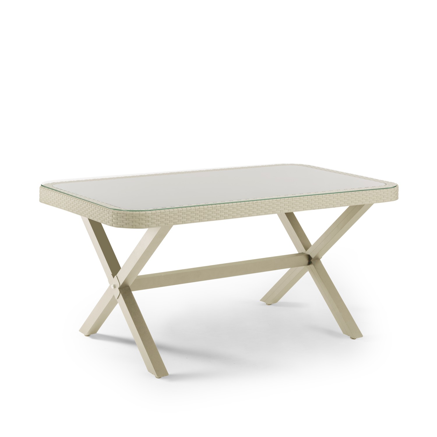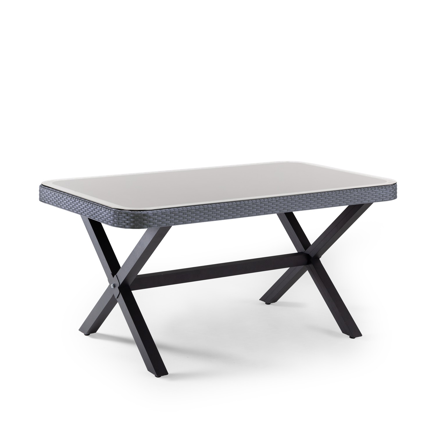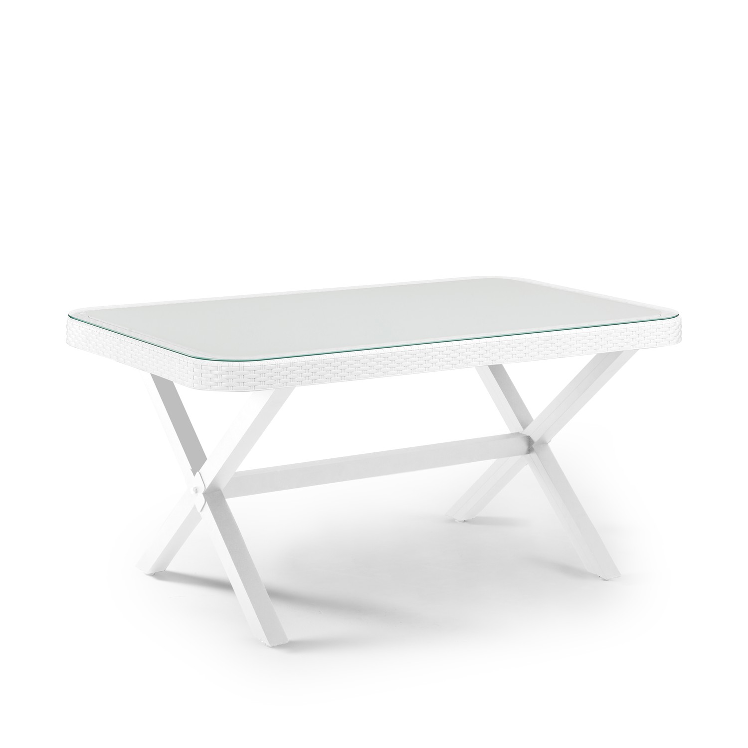 Osaka-X 90×150 – Μακρόστενο Τραπέζι με Τζάμι και Πόδια σε Σχήμα Χ