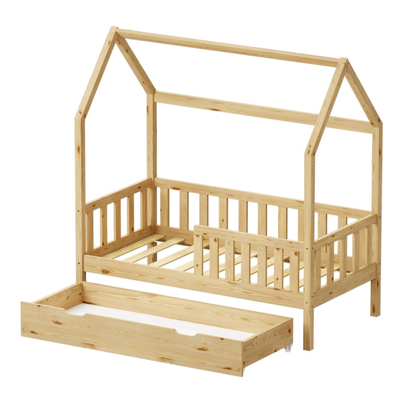 Παιδικό κρεβάτι Bendina τ. Montessori με συρτάρι ξύλο πεύκου σε φυσική απόχρωση 70×140εκ