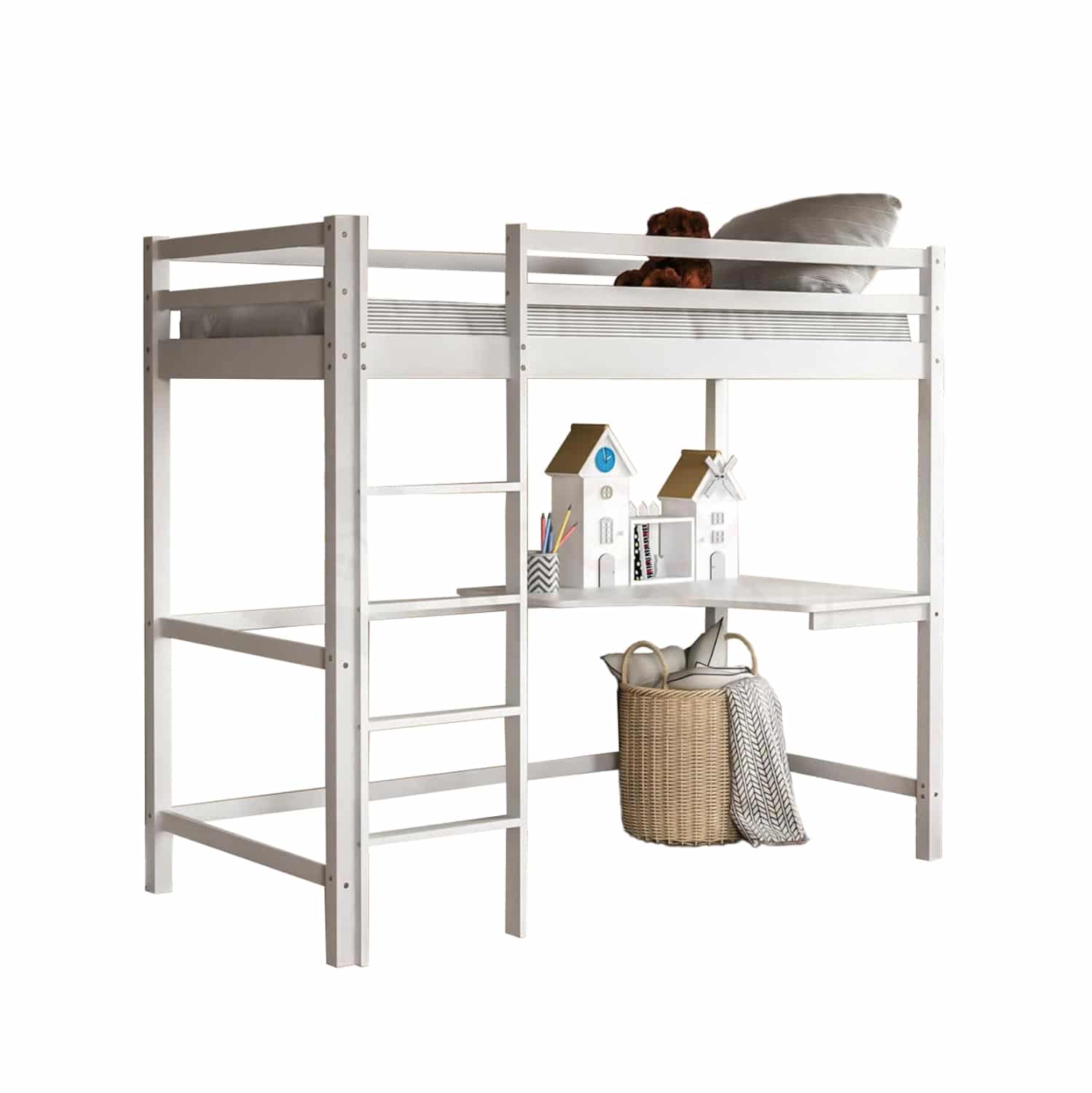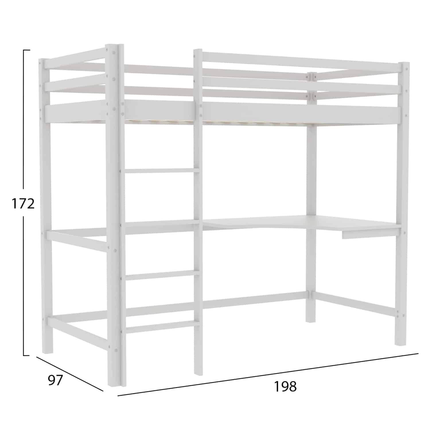 Σας παρουσιάζουμε το καινούργιο παιδικό κρεβάτι-κουκέτα AKRON σε διάσταση για μονό στρώμα 90×190 εκ, και αποτελεί μια άριστης ποιότητας, μοντέρνα και ασφαλή επιλογή για το παιδικό δωμάτιο. Είναι ξύλινο σε ΛΕΥΚΟ χρώμα βαμμένο με αβλαβές βερνίκι με βάση το νερό και μη τοξικό, ιδανικό για παιδιά. Το στρώμα τοποθετείται σε τάβλες κατασκευασμένες από ξυλεία κόντρα πλακέ. Η πρόσβαση στο κρεβάτι γίνεται με πρακτική σκάλα, ενώ στο κάτω μέρος υπάρχει γωνιακό γραφείο. Μια ιδανική πρόταση για δωμάτια με περιορισμένο χώρο.