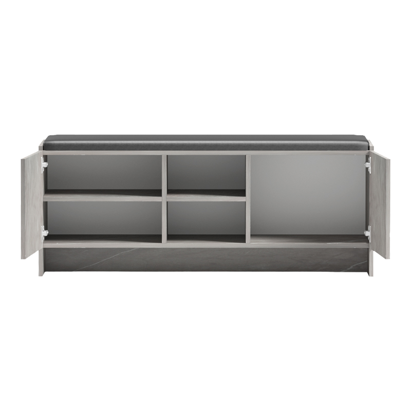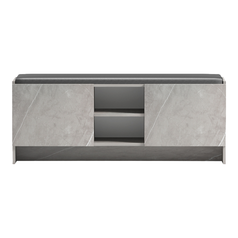 Παπουτσοθήκη-σκαμπό Zulla γκρι μπεζ εφε μαρμαρου-μαυρο 110x37x43εκ