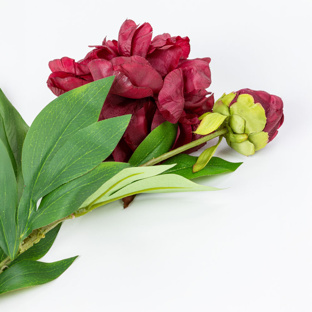 Το μπορντώ τεχνητό λουλούδι PEONY 67cm αποτελεί μια εντυπωσιακή επιλογή που θα δώσει δυναμισμό και ξεχωριστό στυλ σε κάθε χώρο. Ιδανικό για μίνιμαλ και industrial διακοσμήσεις, συνδυάζεται άψογα με σκούρες αποχρώσεις αλλά και πιο ουδέτερες, δημιουργώντας έτσι έντονη αντίθεση. Τα πέταλά του, χάρη στην κατασκευή του από πολυεστέρα, έχουν ρεαλιστική όψη, δημιουργώντας μια αίσθηση βάθους και κομψότητας. Κατάλληλη επιλογή που τραβάει τα βλέμματα, για τη διακόσμηση οικιακού αλλά και επαγγελματικού περιβάλλοντος.