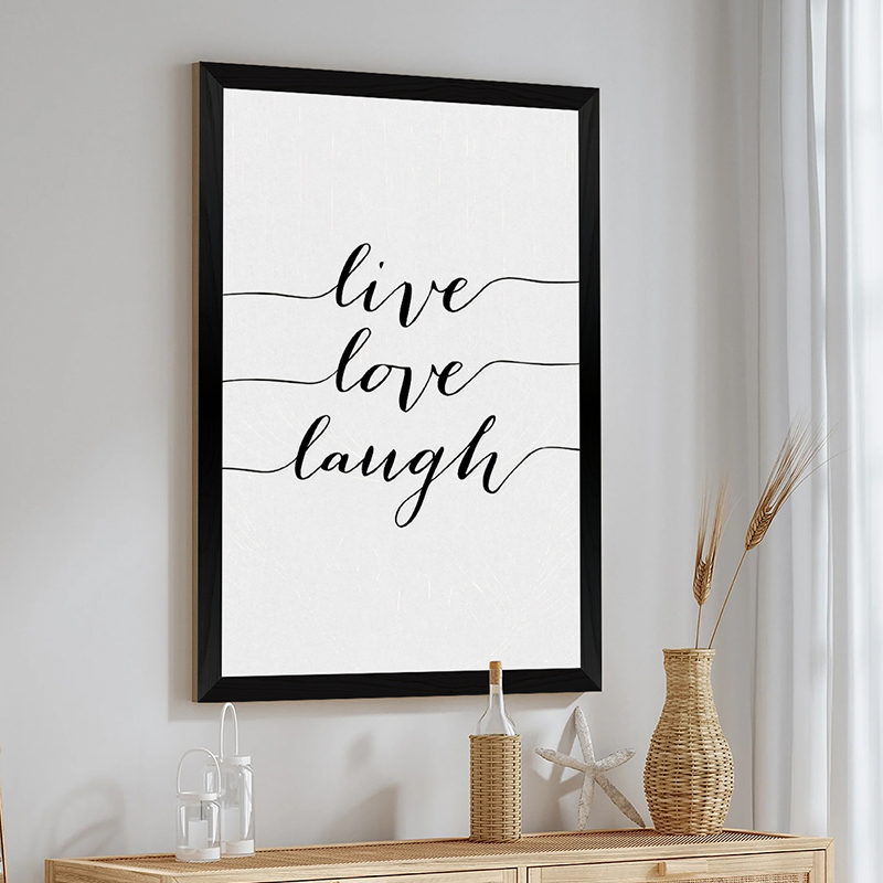Ο πίνακας Elira είναι ένα σύγχρονο έργο τέχνης που προσφέρει θετική ενέργεια και στιλ στον χώρο σας. Με το διαχρονικό μήνυμα “live, love, laugh” σε μια κομψή μίξη χειρόγραφων και απλών γραμματοσειρών, δημιουργεί μια ζεστή και φιλόξενη ατμόσφαιρα. Το ασπρόμαυρο design, με τις οριζόντιες διαχωριστικές γραμμές, το καθιστά ιδανικό για να συμπληρώσει μια Scandi ή Modern Minimal διακόσμηση.
