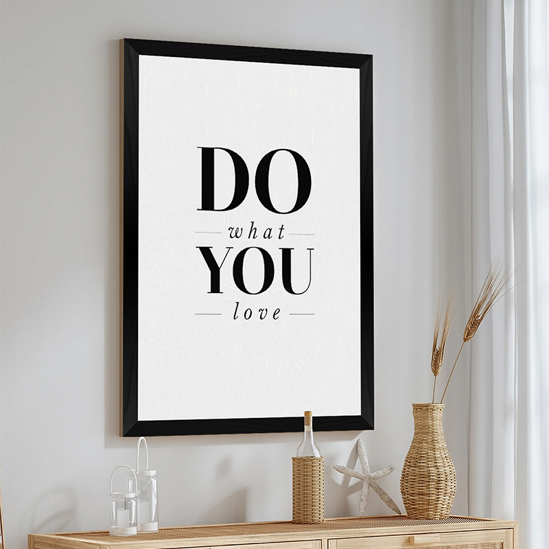 Ο πίνακας Venor είναι το ιδανικό έργο τέχνης για όσους αναζητούν έμπνευση και μια υπενθύμιση να ακολουθούν τα πάθη τους. Το μήνυμα “DO what YOU love” αποτυπώνεται με μια δυναμική μίξη γραμματοσειρών, όπου η λέξη “YOU” ξεχωρίζει έντονα. Η καθαρή, ασπρόμαυρη αισθητική και η έμφαση στη λέξη-κλειδί τον καθιστούν ιδανικό για γραφεία, χώρους εργασίας, ή οποιοδήποτε δωμάτιο χρειάζεται μια ενεργητική και μοντέρνα πινελιά.