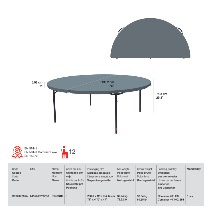 Planet Ø200 – Πτυσσόμενο Τραπέζι Ροτόντα Βαλίτσα