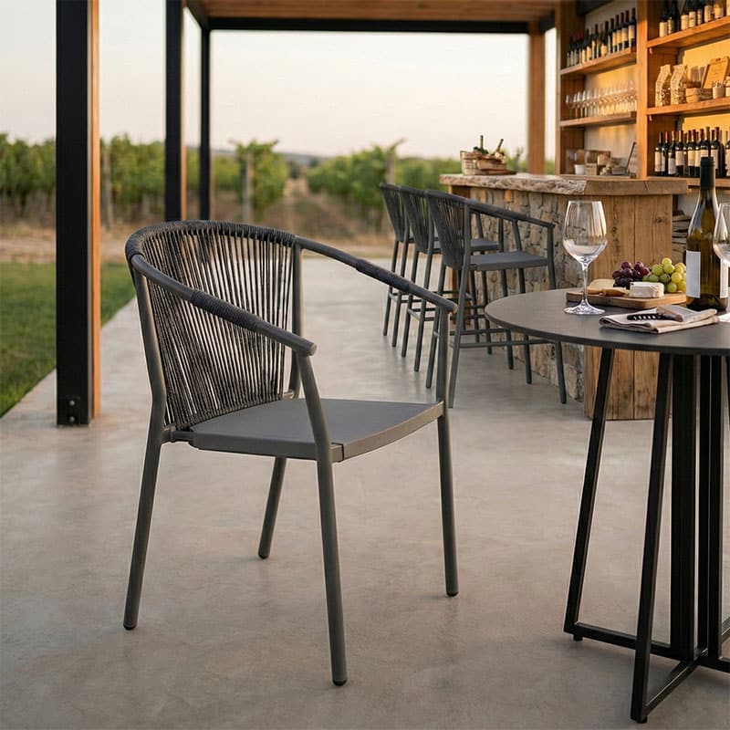 Πολυθρόνα στοιβαζόμενη Convince γκρι αλουμίνιο-pe rattan ανθρακί-textilene σε γκρι απόχρωση 56x63x82εκ