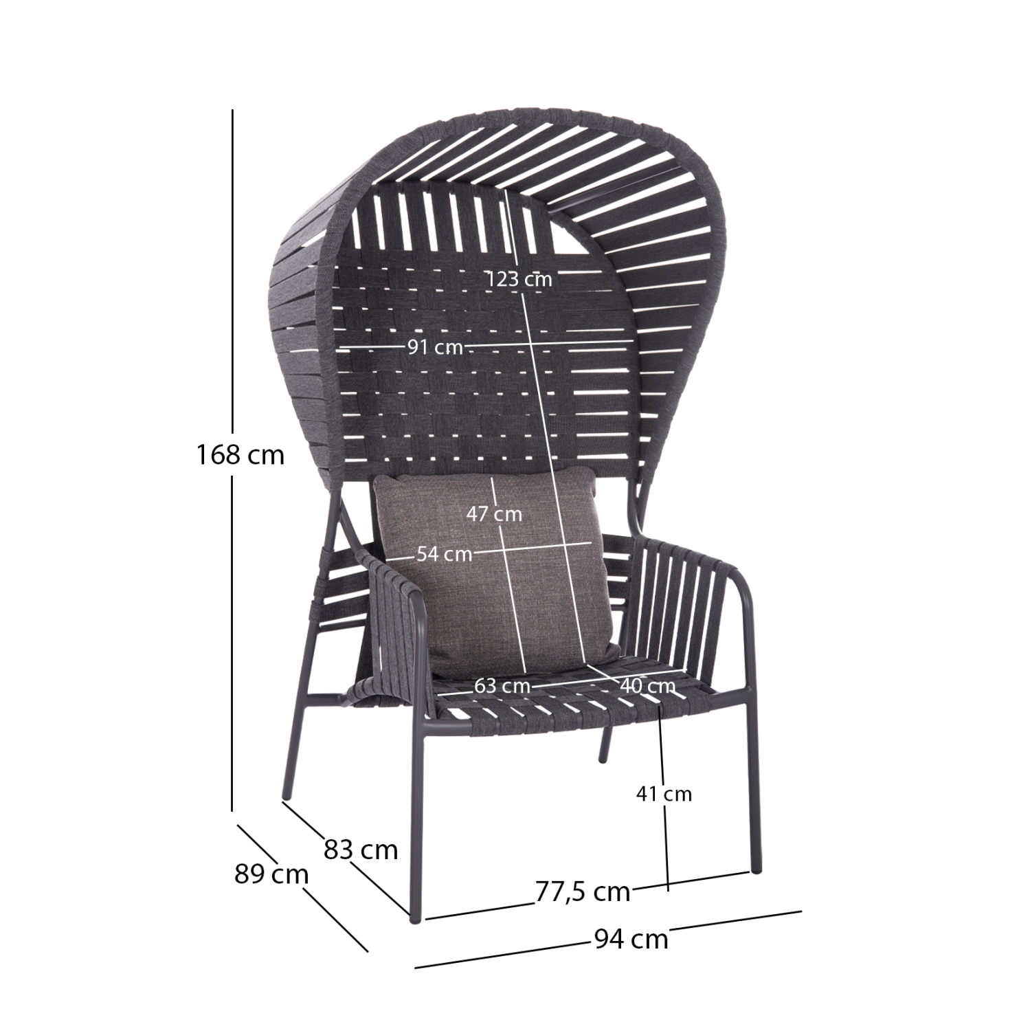 Η SYMETRON παρουσιάζει την μοναδική πολυθρόνα εξωτερικού χώρου STUNNER. Κατασκευασμένη από αλουμίνιο και σχοινί strap ως επένδυση αποπνέει πολυτέλεια και άνεση. Αυτό που την κάνει να ξεχωρίζει είναι ο σχεδιασμός της με σκίαστρο, πράγμα που προσδίδει μια ξεχωριστή εικόνα στον χώρο σας. Το χρώμα της πολυθρόνας είναι εξολοκλήρου ΑΝΘΡΑΚΙ, και το μόνο που απομένει είναι την ταιριάξετε με έπιπλα ανάλογης αισθητικής και στυλ!