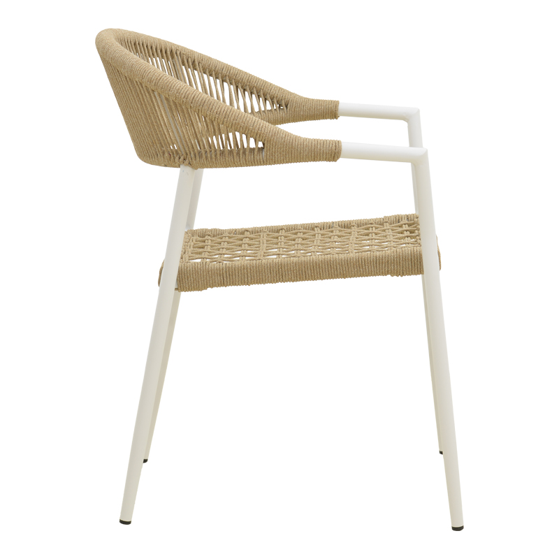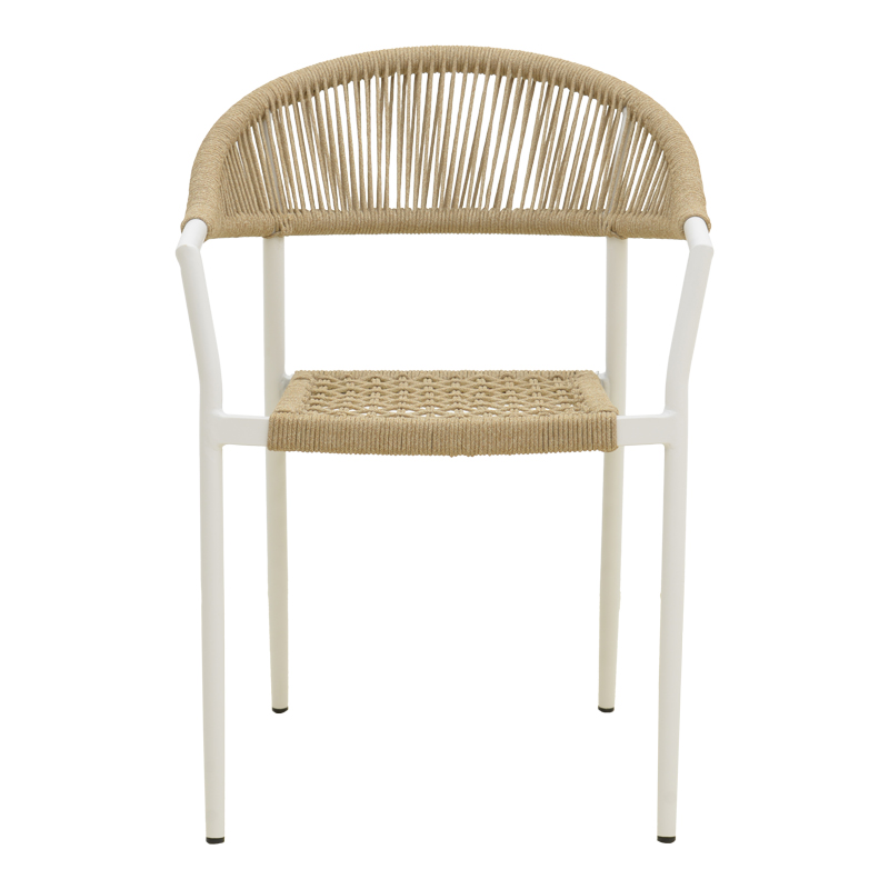 Πολυθρόνα Ammos στοιβαζόμενη αλουμίνιο σε λευκή- pe σχοινί σε φυσική απόχρωση 56×61.5×82εκ