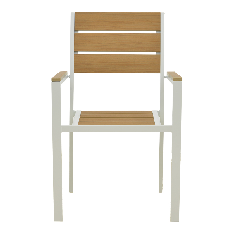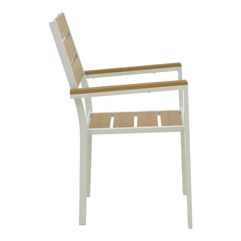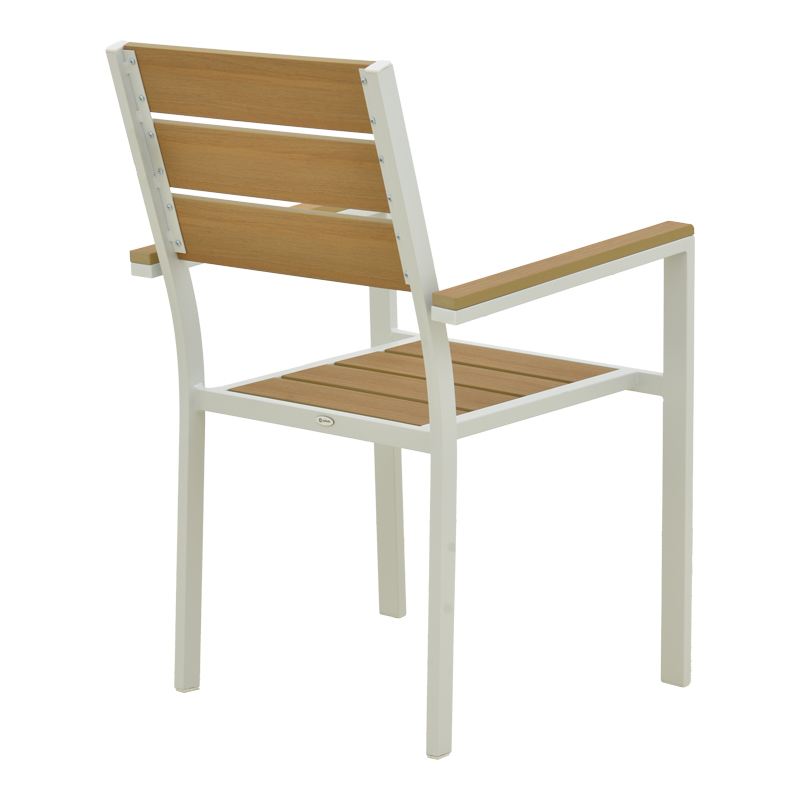 - Plywood: Το plywood είναι ένα σύνθετο υλικό που μοιάζει με ξύλο, κατασκευασμένο από ανακυκλωμένα πλαστικά. Χρησιμοποιείται συνήθως για την κατασκευή εξωτερικών επίπλων, όπως τραπέζια, καρέκλες, ξαπλώστρες και παγκάκια. Είναι εξαιρετικά ανθεκτικό στις καιρικές συνθήκες.