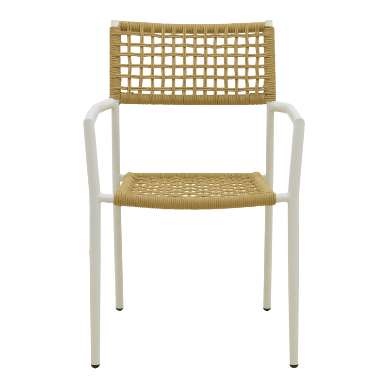 Πολυθρόνα Castal στοιβαζόμενη μέταλλο σε λευκή -pe σχοινί σε φυσική απόχρωση 53x59x84εκ