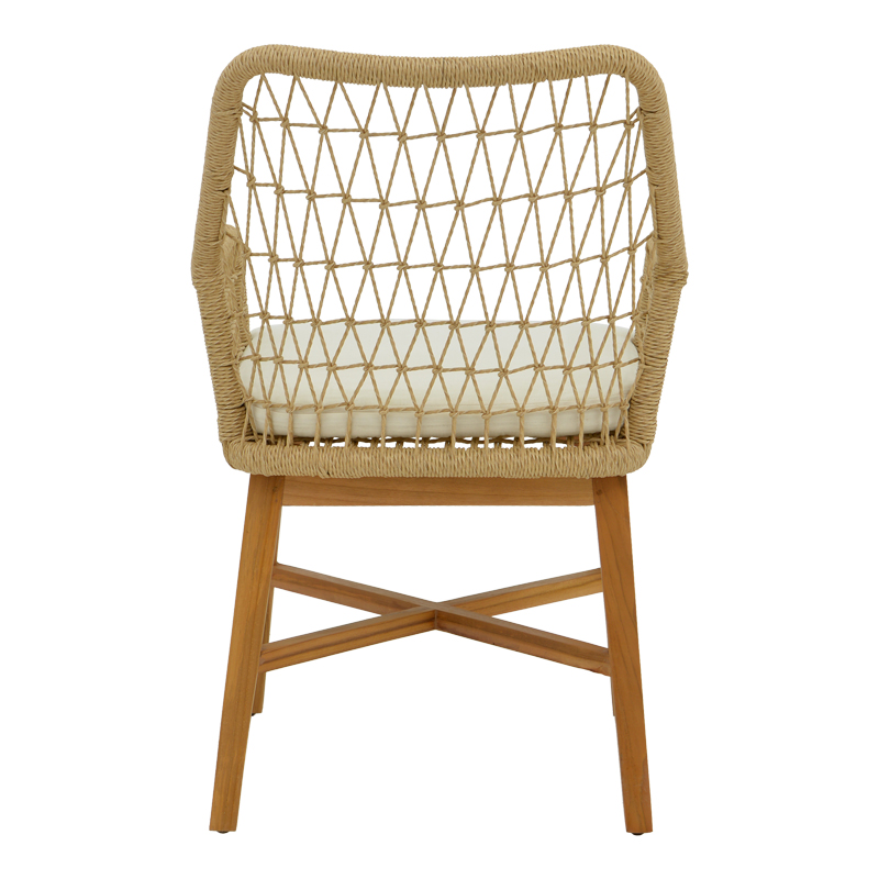 Πολυθρόνα Elaiza pakoworl teak ξύλο και pe σχοινί σε φυσική-μπεζ απόχρωση με μαξιλάρι 58x60x90εκ
