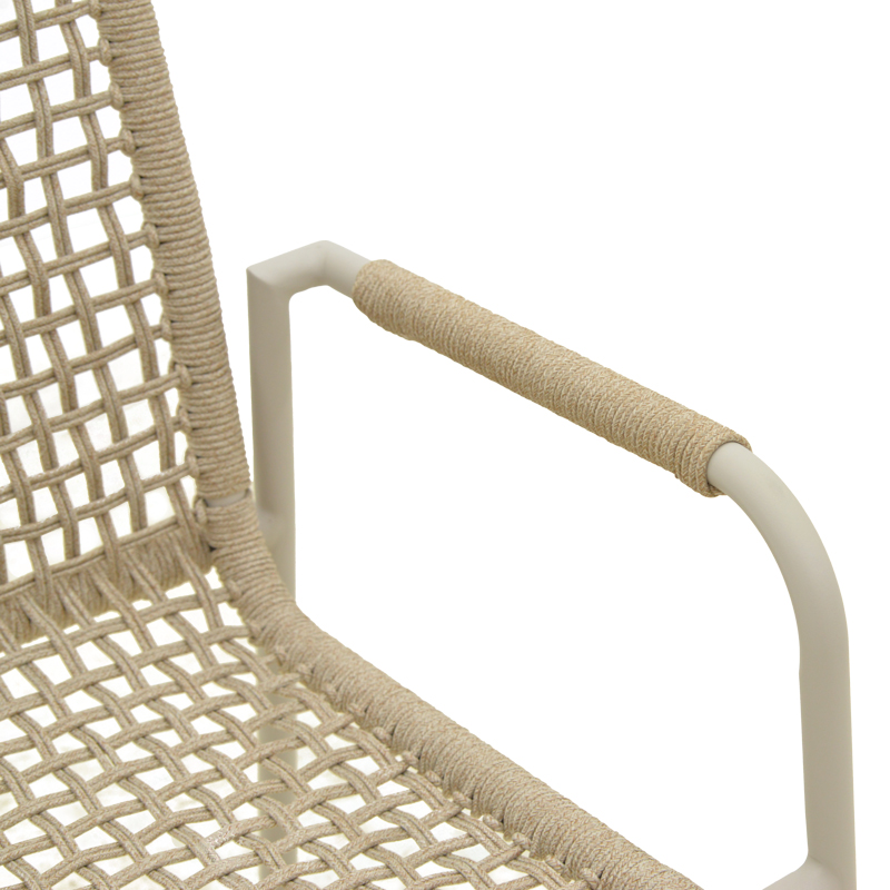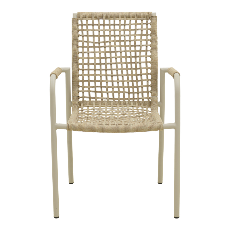 Πολυθρόνα Esence στοιβαζόμενη αλουμίνιο cappuccino με pe σχοινί σε μπεζ απόχρωση 56×61,5×87,5εκ