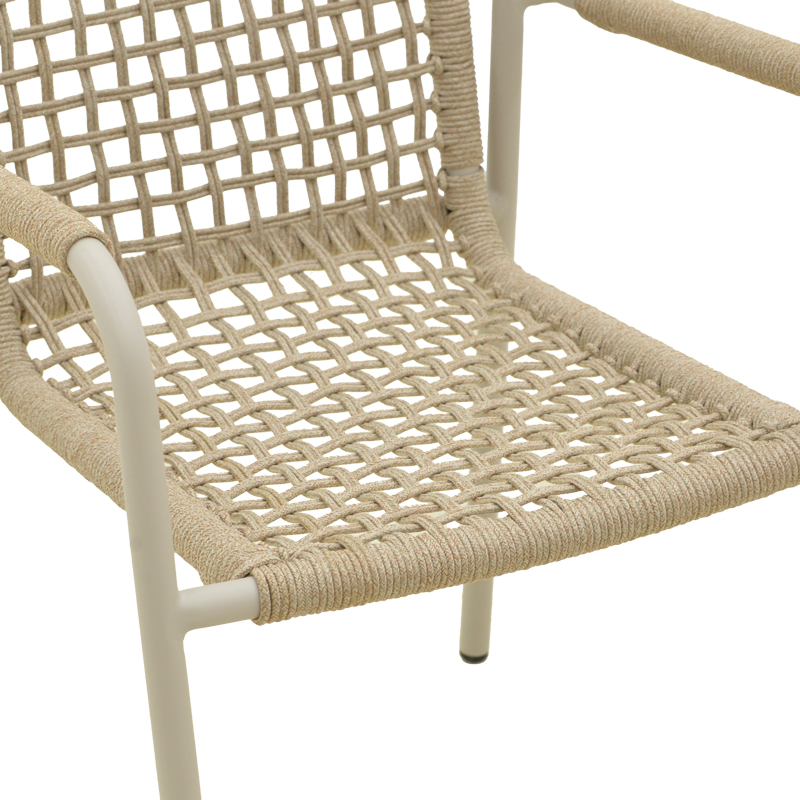 - Μοναδική Πλέξη Σχοινιού: Η πλέξη από ανθεκτικό σχοινί (Ø5mm) προσφέρει όχι μόνο μια ξεχωριστή αισθητική, αλλά και άνεση χωρίς την ανάγκη για επιπλέον μαξιλάρια.