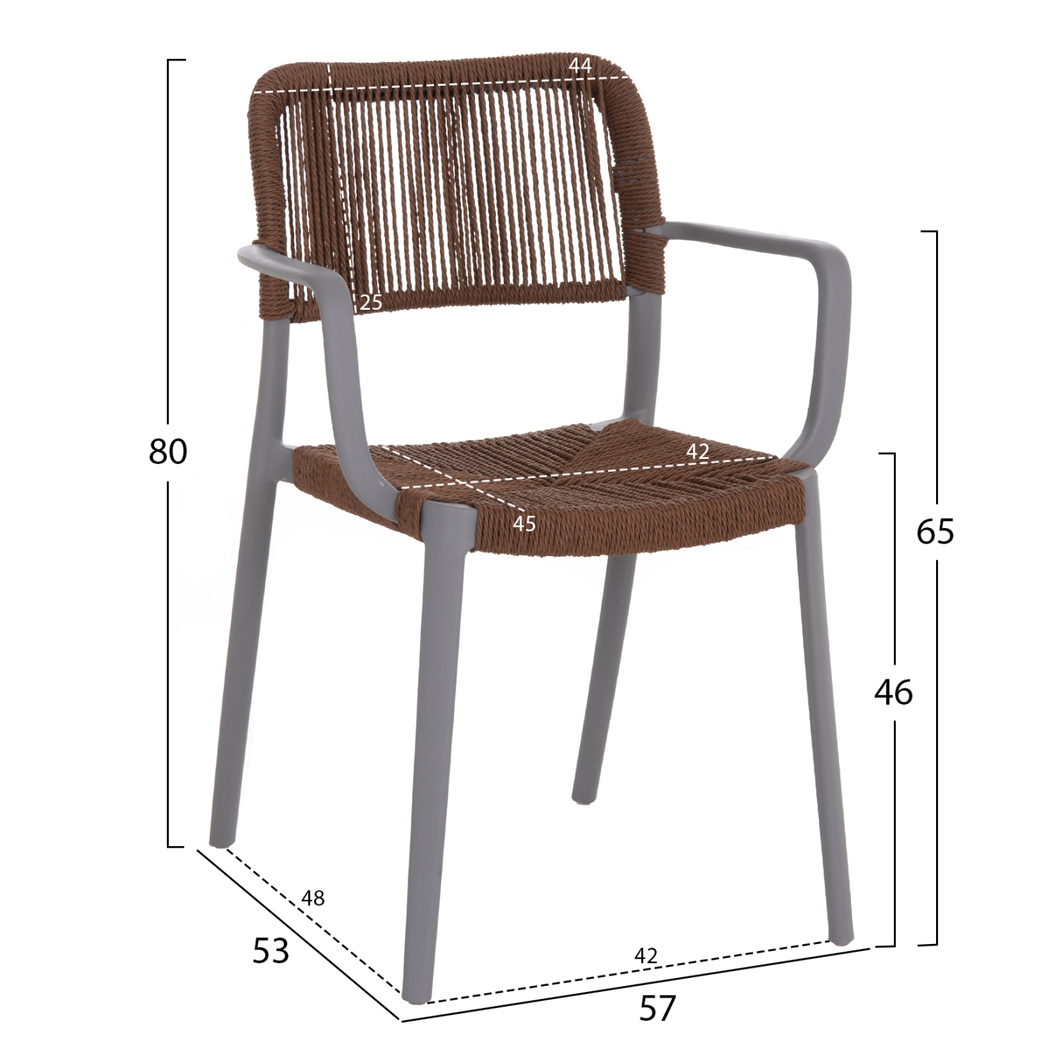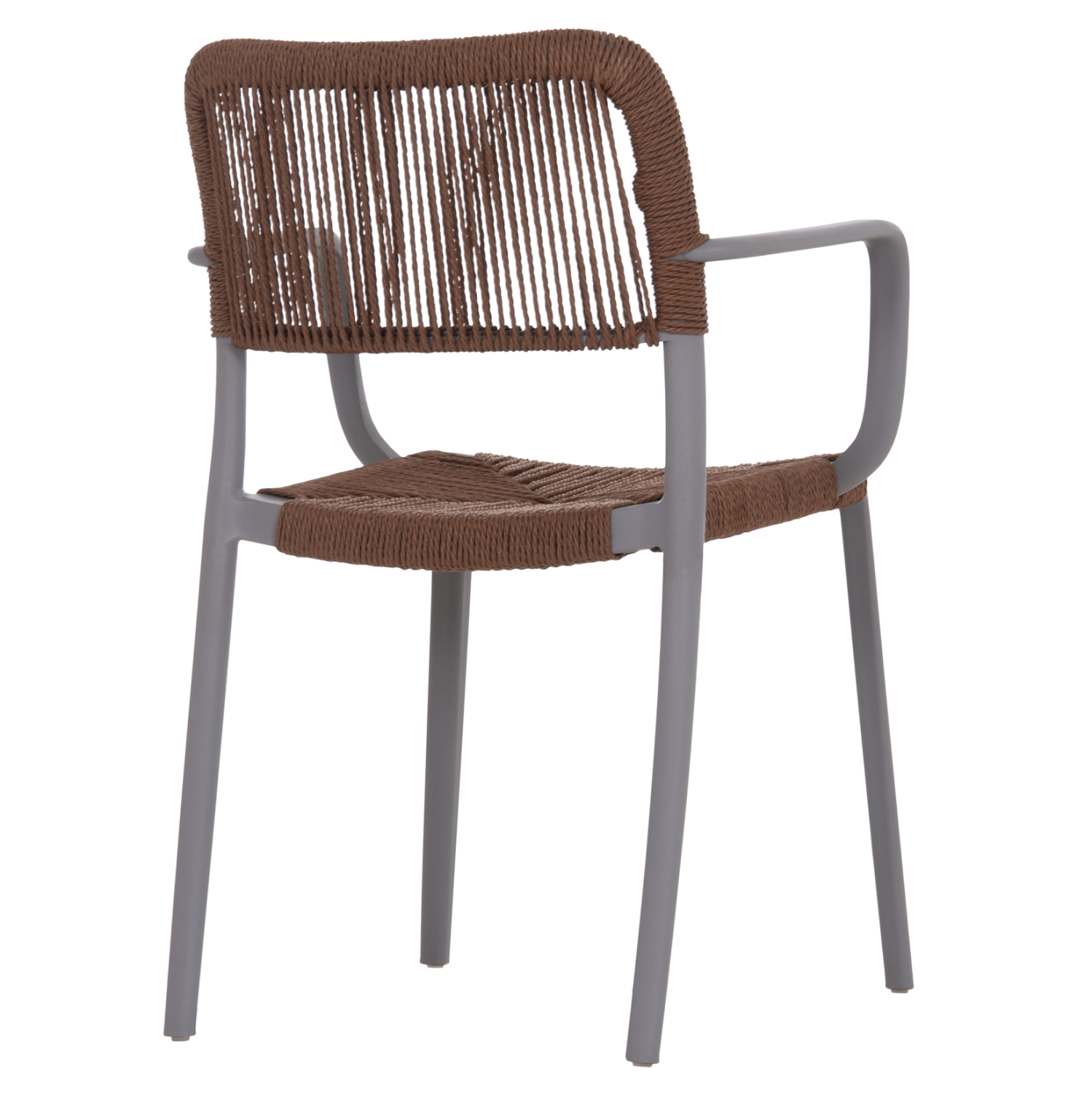 Η πολυθρόνα τραπεζαρίας εξωτερικού χώρου STRIDER συνδυάζει σύγχρονη αισθητική και πρακτικότητα, αποτελώντας ιδανική επιλογή για βεράντες, κήπους και επαγγελματικούς εξωτερικούς χώρους. Ο ανθεκτικός σκελετός από πολυπροπυλένιο σε γκρι απόχρωση συνδυάζεται αρμονικά με κάθισμα και πλάτη από καφέ σχοινί, προσφέροντας μοντέρνο χαρακτήρα και άνεση.