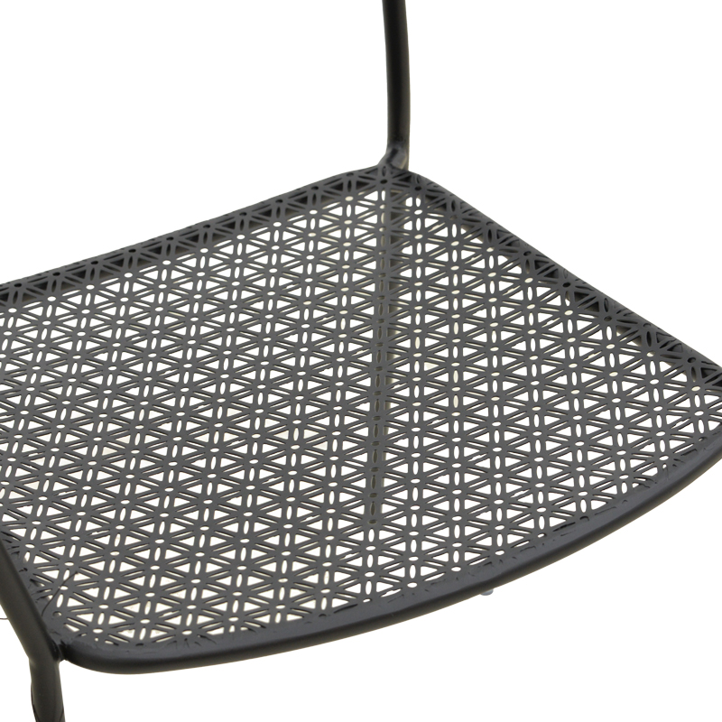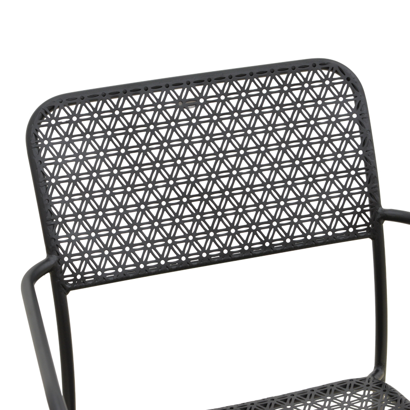 - Διάτρητο σχέδιο πλάτης και έδρας που προσδίδει μια αέρινη, ανάλαφρη όψη. Αυτό το στυλ επιτρέπει στον αέρα να κυκλοφορεί ελεύθερα, ενώ ταυτόχρονα προσφέρει μια εκλεπτυσμένη, γλυπτική παρουσία στον κήπο σας.