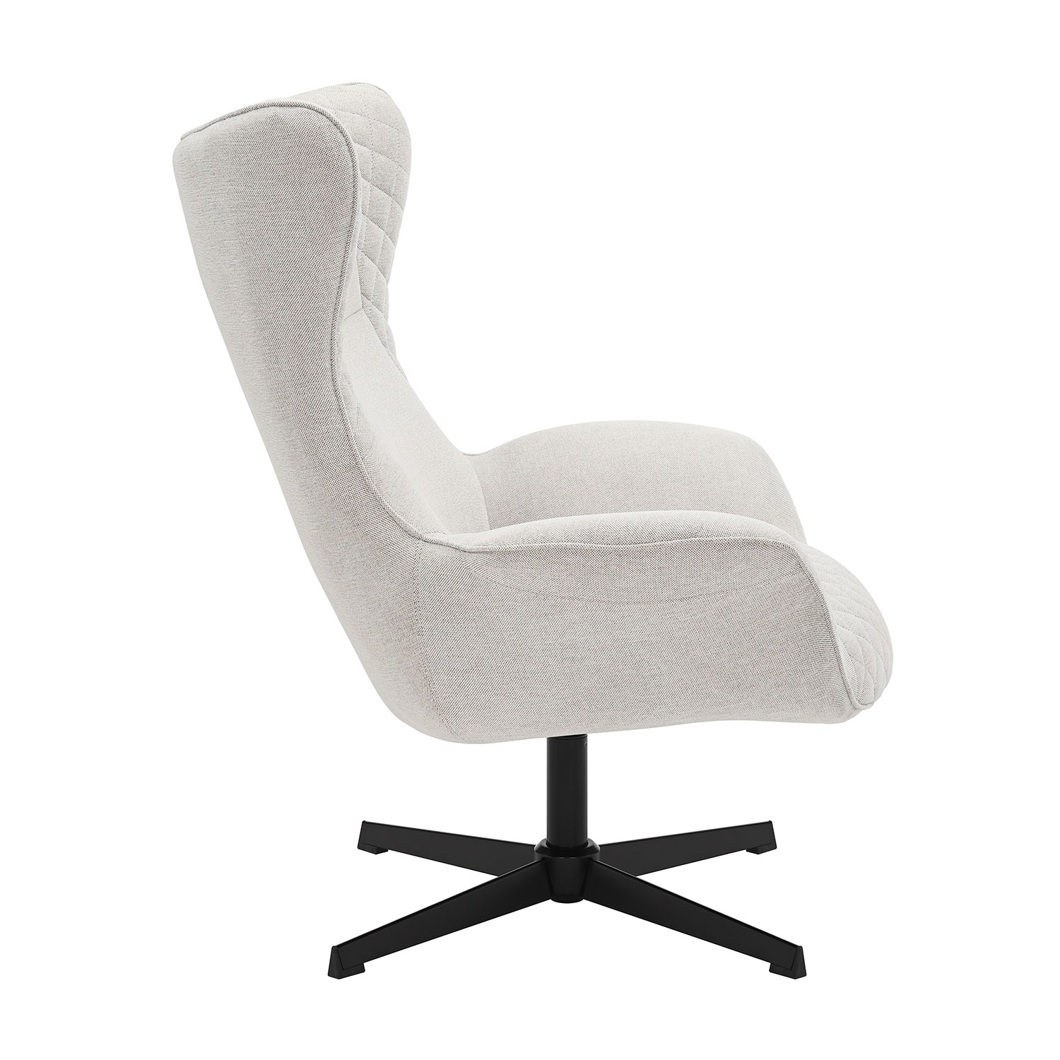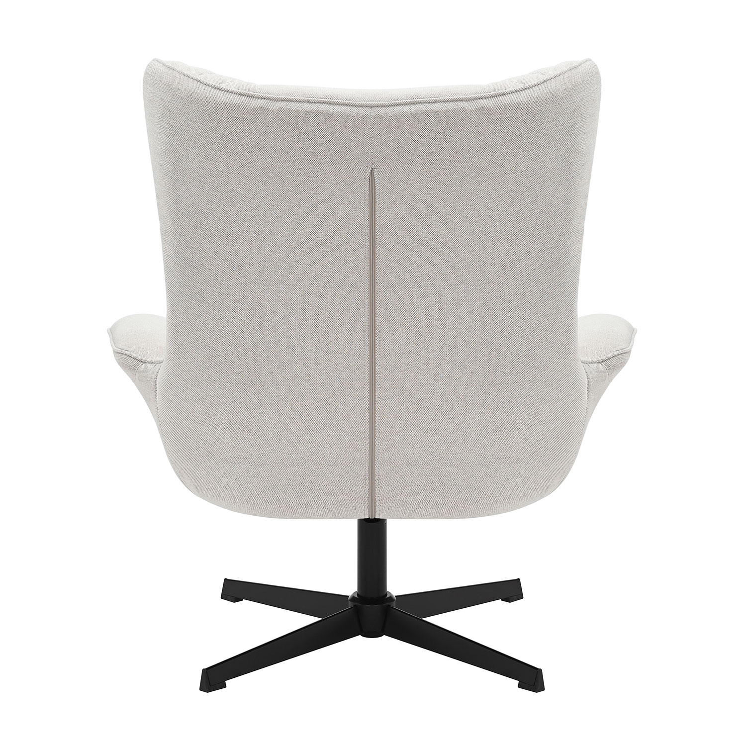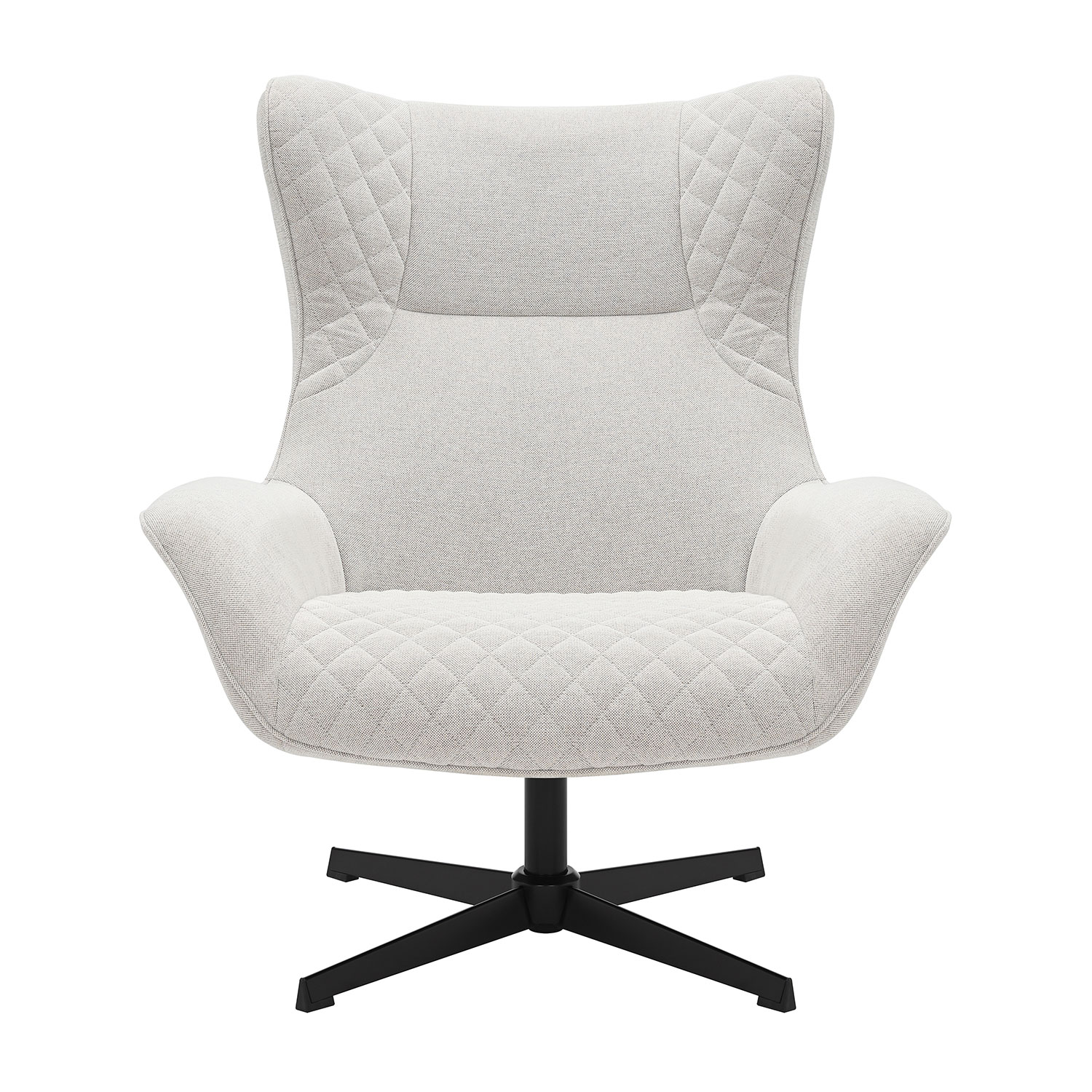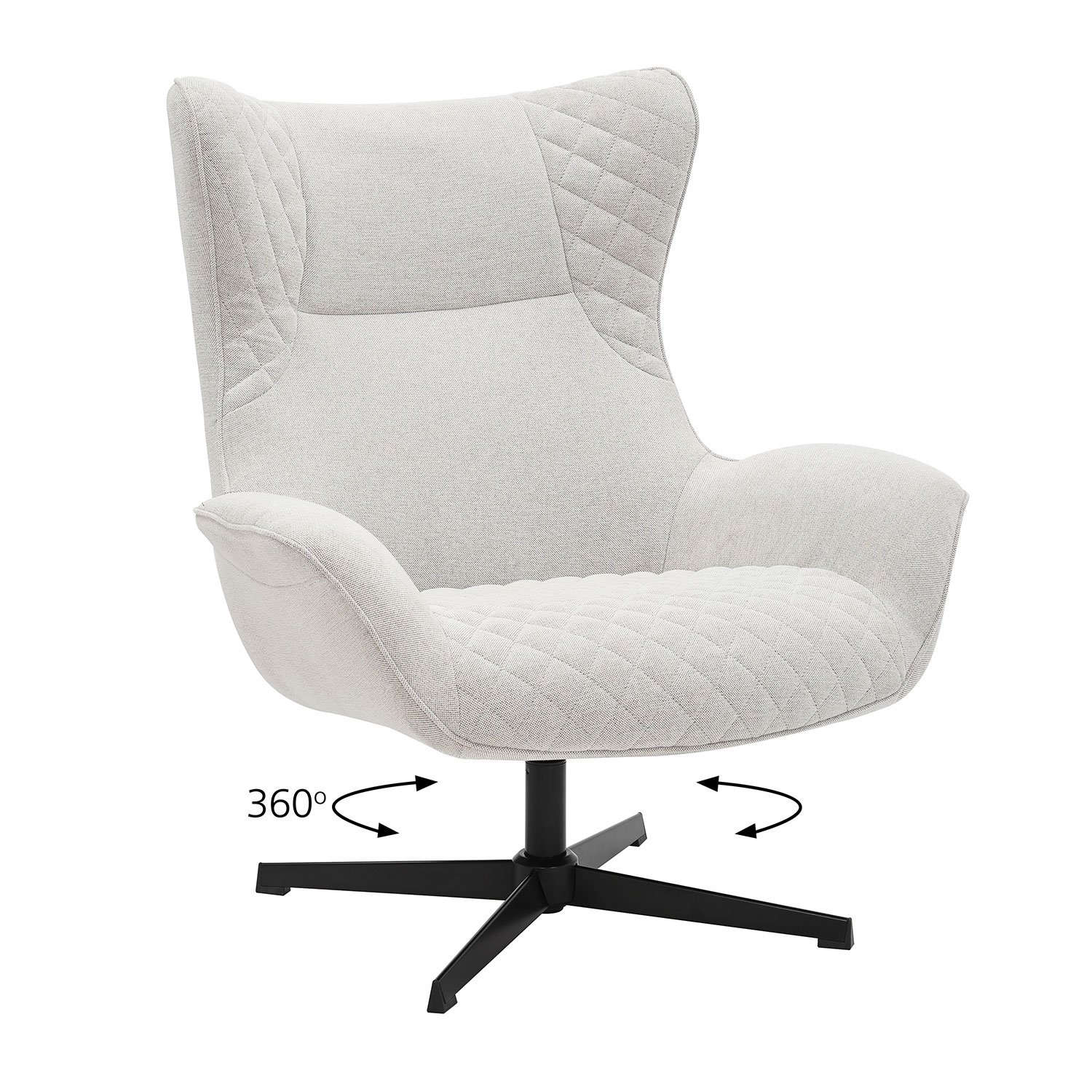 Περιστρεφόμενη πολυθρόνα επενδεδυμένη με ύφασμα και μεταλλικό σκελετό.