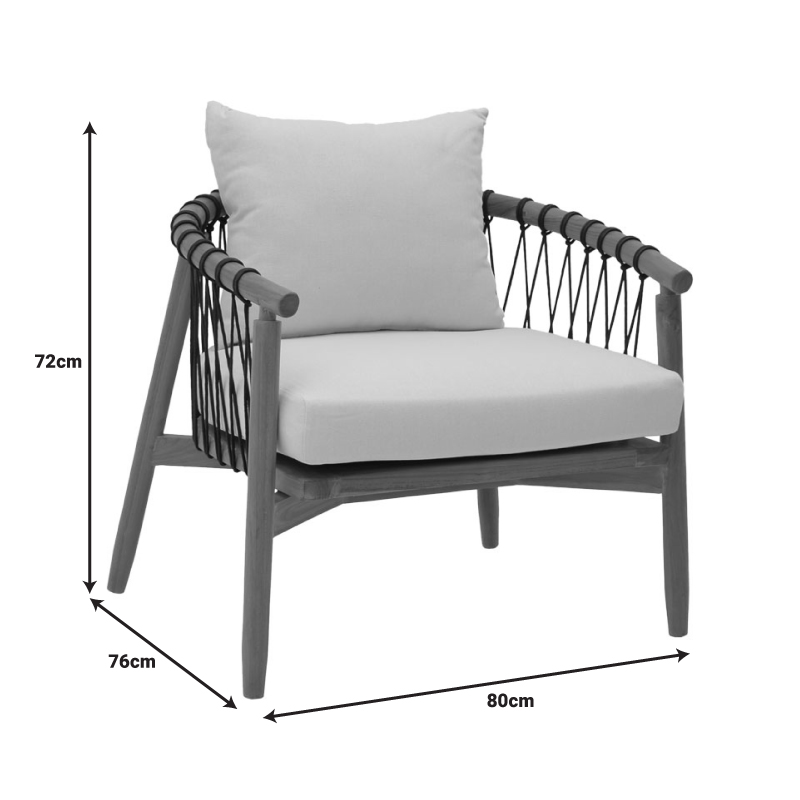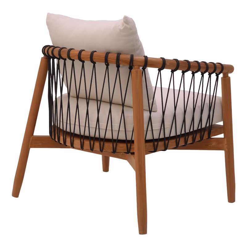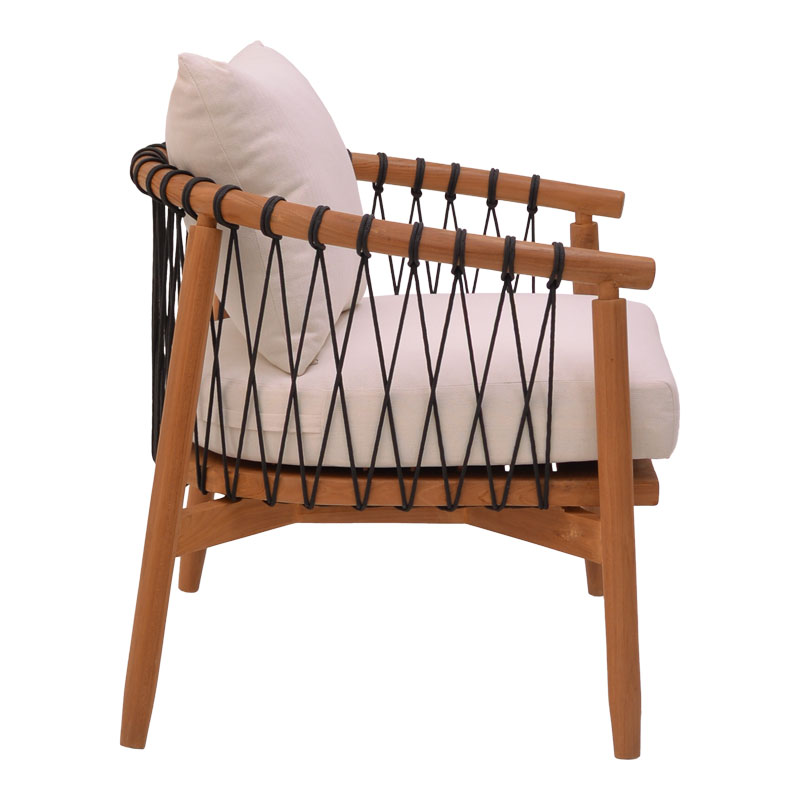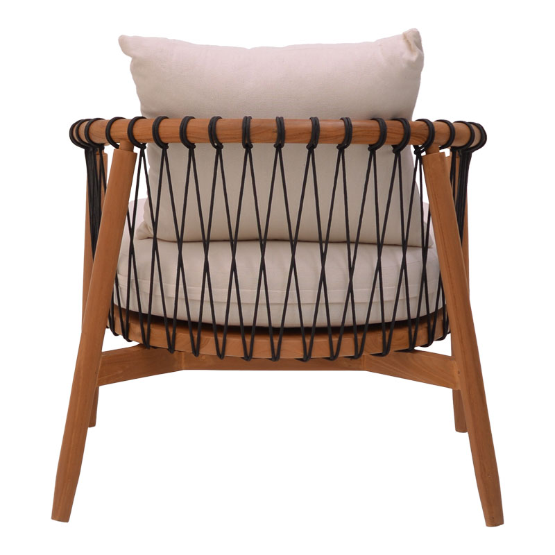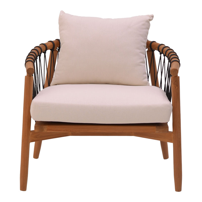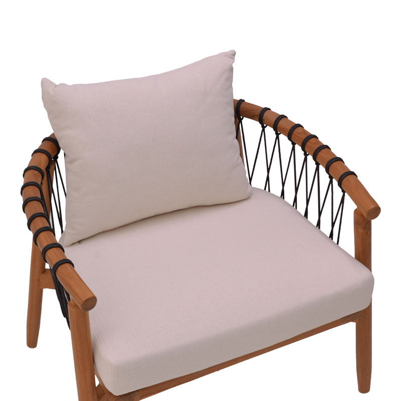 Πολυθρόνα Haribo φυσικό teak ξύλο-μαύρο σχοινί-λευκο μαξιλάρι 80x76x72εκ